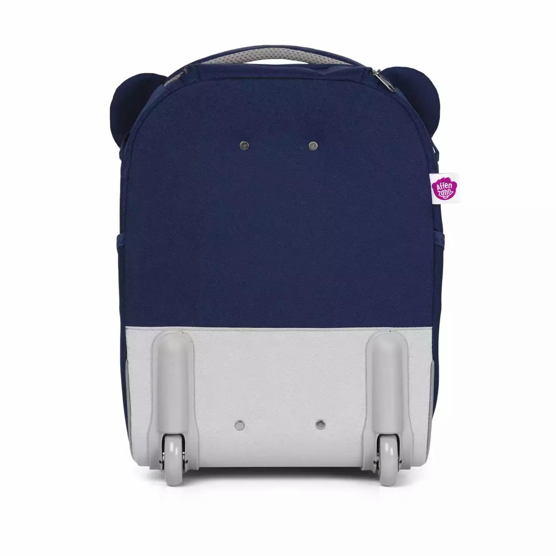 Mit dem Affenzahn Trolley Bobo Bär stehen tierischen Reiseabenteuern nichts mehr im Weg. Das freche und fröhliche Frontfach mit Bobo Bär hat Platz für Spielsachen, die schnell griffbereit sein müssen. Auf der typischen Ziehzungen können Namen und/oder Adressen hinterlassen werden. Das große Staufach im Inneren ist mit einer zusätzlichen Meshtasche ausgestattet. Für Regenschirm und Trinkflaschen eignen sich die zusätzlichen Außentaschen. Die Stange ist 3-fach höhenverstellbar, sodass sich der Trolley von Affenzahn jeder Kröpergröße anpasst. Muss es einmal schnell gehen, kann die Reisetasche dank des Schultergurtes schnell übergeworfen werden. Praktischweise entspricht Bobo Bär Trolley den Handgepäck-Richtlinien und kann in allen Airlines als Handgepäck mitgenommen werden.