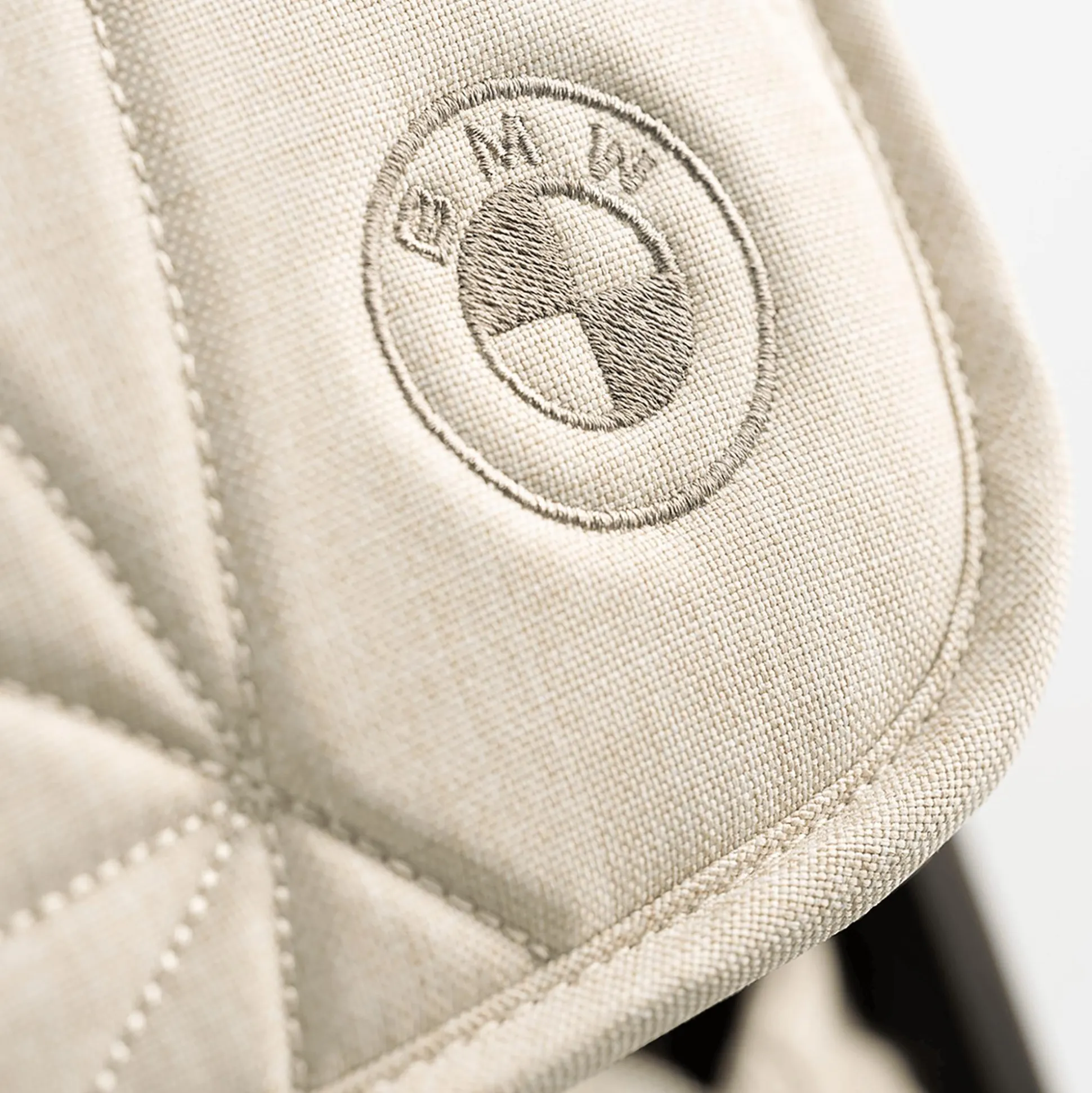 - sanfter, neutraler Beigeton mit unverwechselbarem BMW Crystal Muster und dunkelbraunen Leatherette-Akzenten