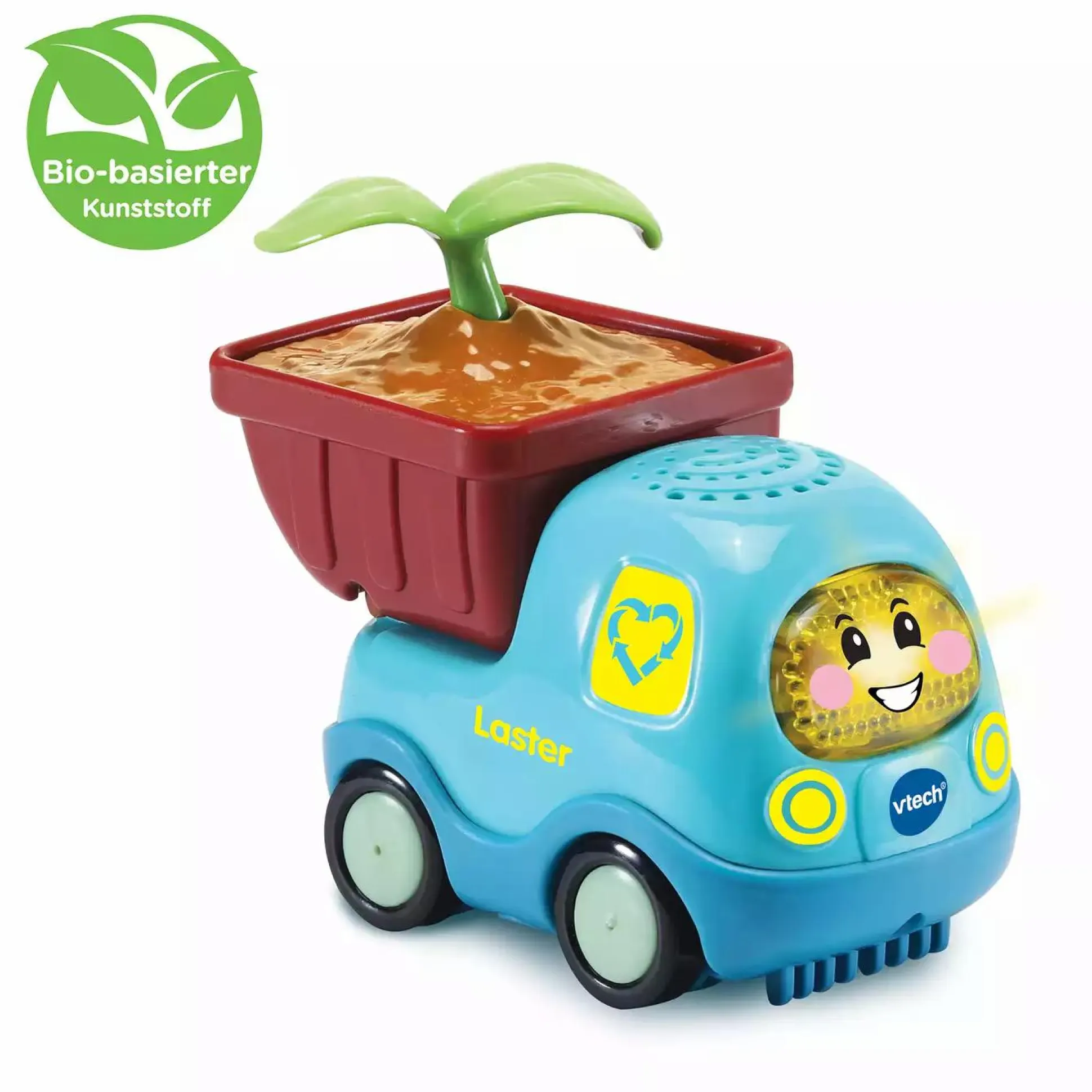 Dieser niedliche Tut Tut Flitzer Laster von Vtech macht nicht nur lustige Geräusche und spricht fröhliche Sätze, sondern spielt auch 6 verschiedene Kinder-Melodien und singt 3 unterschiedliche Lieder. Zudem reagiert er auf die Bewegung der Räder und hat auch eine leuchtende Taste zum Drücken, sodass deinem Kleinen nie langweilig wird. Das kindersichere Batteriefach und die Abschaltautomatik machen dieses Spielzeug zu einem idealen Begleiter für dein Kind. Das Spielzeug besteht außerdem zu 90% aus bio-basiertem Plastik.