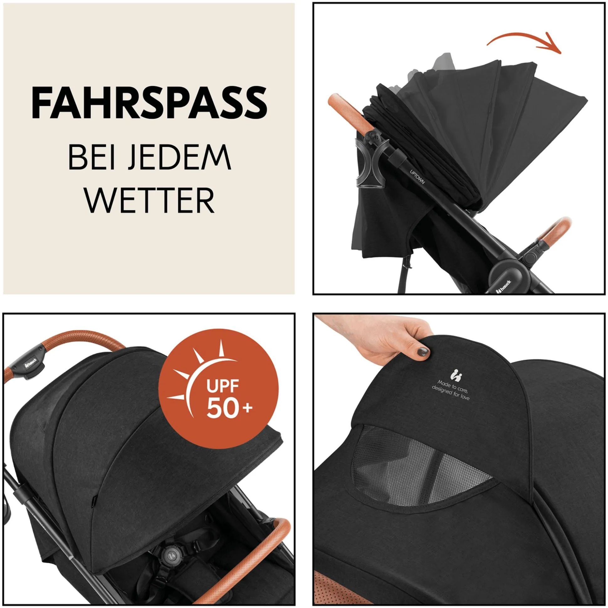 Auch Wind und Wetter oder starker Sonnenschein sind für den Uptown-Buggy kein Problem: Das abnehmbare 3-Zonen-Verdeck mit UV-Schutz 50+ spendet wohltuenden Schatten und das integrierte Sichtfenster lässt dich jederzeit einen liebevollen Blick auf dein Kind werfen. Apropos Blickfang: Der stylische Vorderbügel aus perforiertem Kunstleder sieht nicht nur gut aus, sondern lässt sich auch im Nu reinigen.