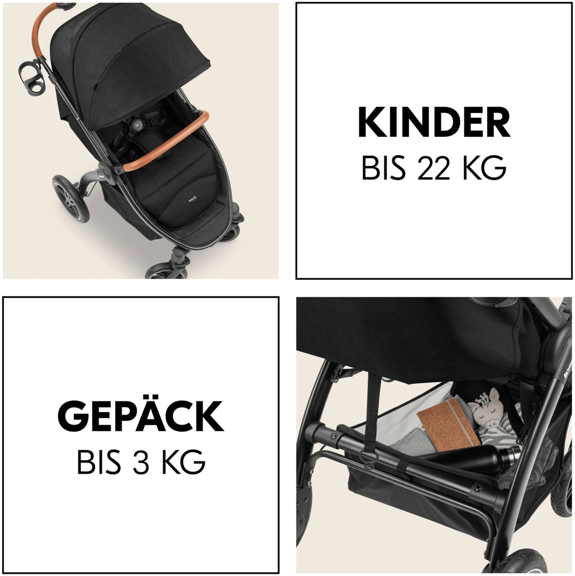 - geeignet für Kinder bis ca. 22 kg + weitere ca. 3 kg für Einkäufe, Spielsachen etc.