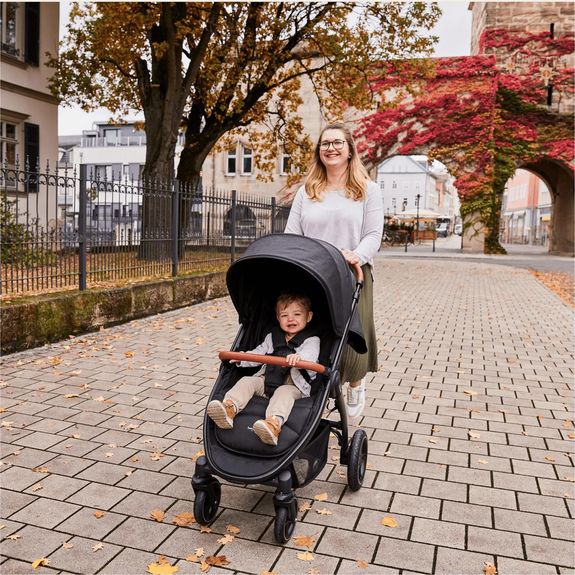Die pannensicheren Gummiräder mit Allrad-Federung machen kurzen Prozess mit Schlaglöchern, Bordsteinen oder holprigen Wegen – damit immer eine sanfte Fahrt gewährleistet wird. Die Vorderräder sind schwenkbar und feststellbar – je nachdem, ob du gerade auf Entdeckungstour bist oder zielgerichtet den nächsten Spielplatz ansteuerst.