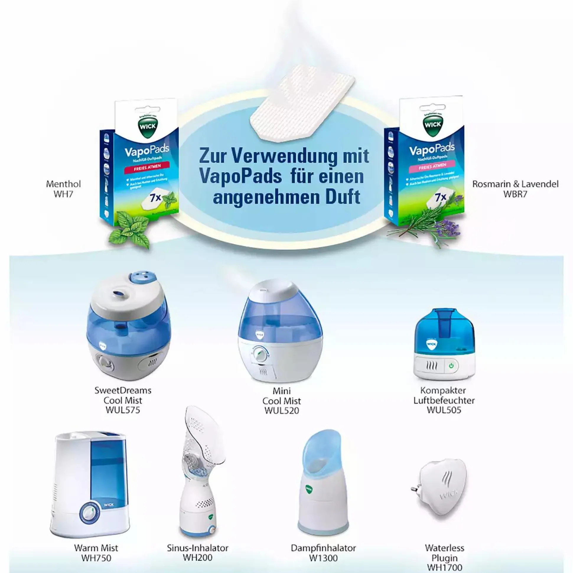 - kompatibel mit allen von Wick empfohlenen Luftbefeuchtern, Inhalatoren und Vapo-Stecker