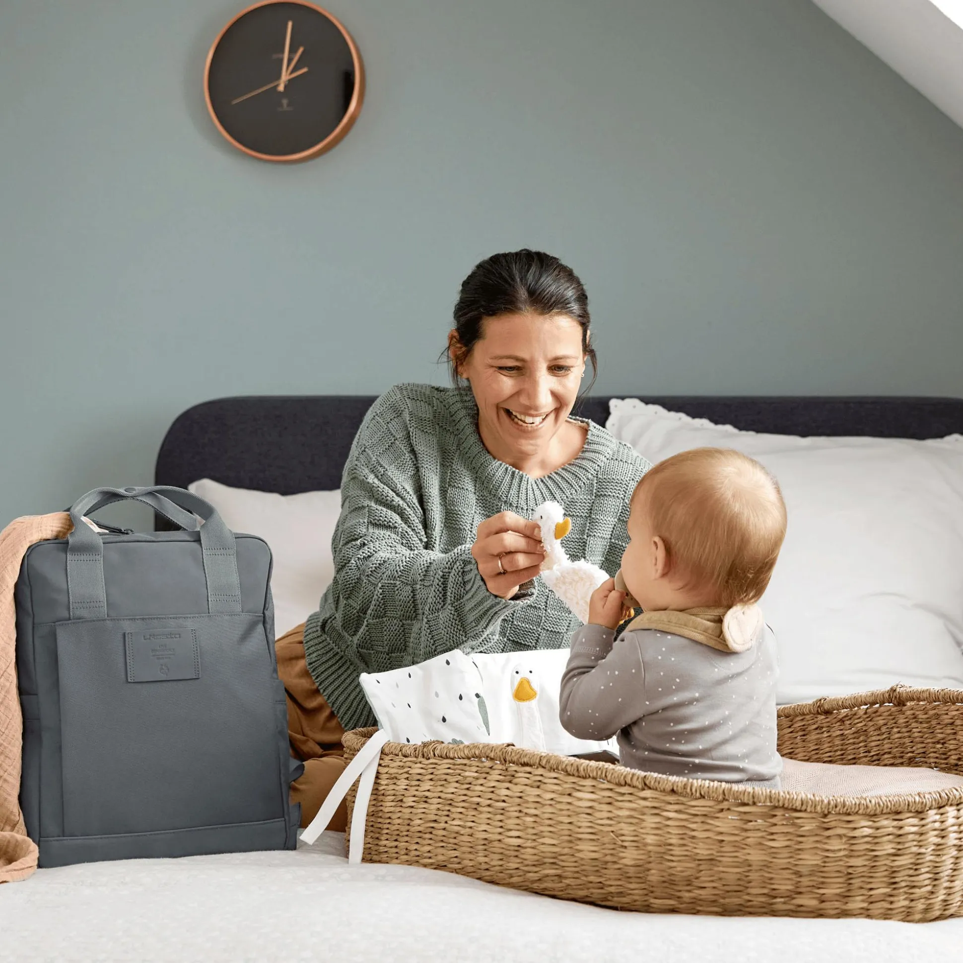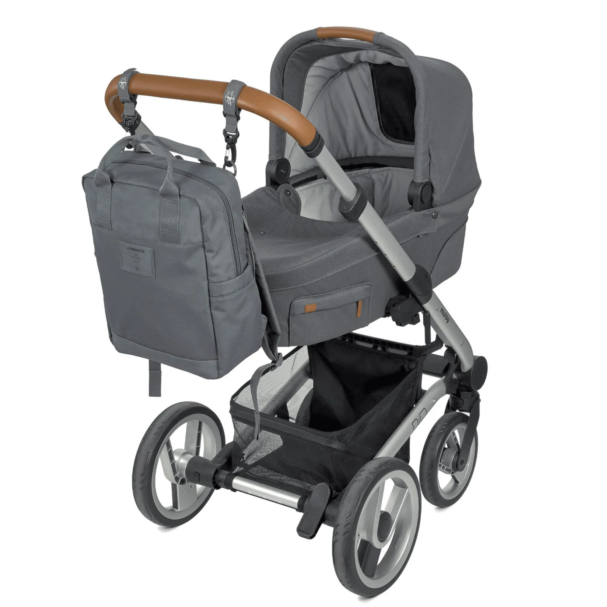 Ausgestattet mit einer wasserabweisenden Wickelunterlage, einem isolierten Flaschenhalter, einer Gläschenhalterung, einer Utensilientasche und einer Kinderwagenbefestigung hast du alles, was du unterwegs so braucht. Das umfangreiche Wickelzubehör kann ganz einfach herausgenommen werden, falls es mal nicht benötigt wird.