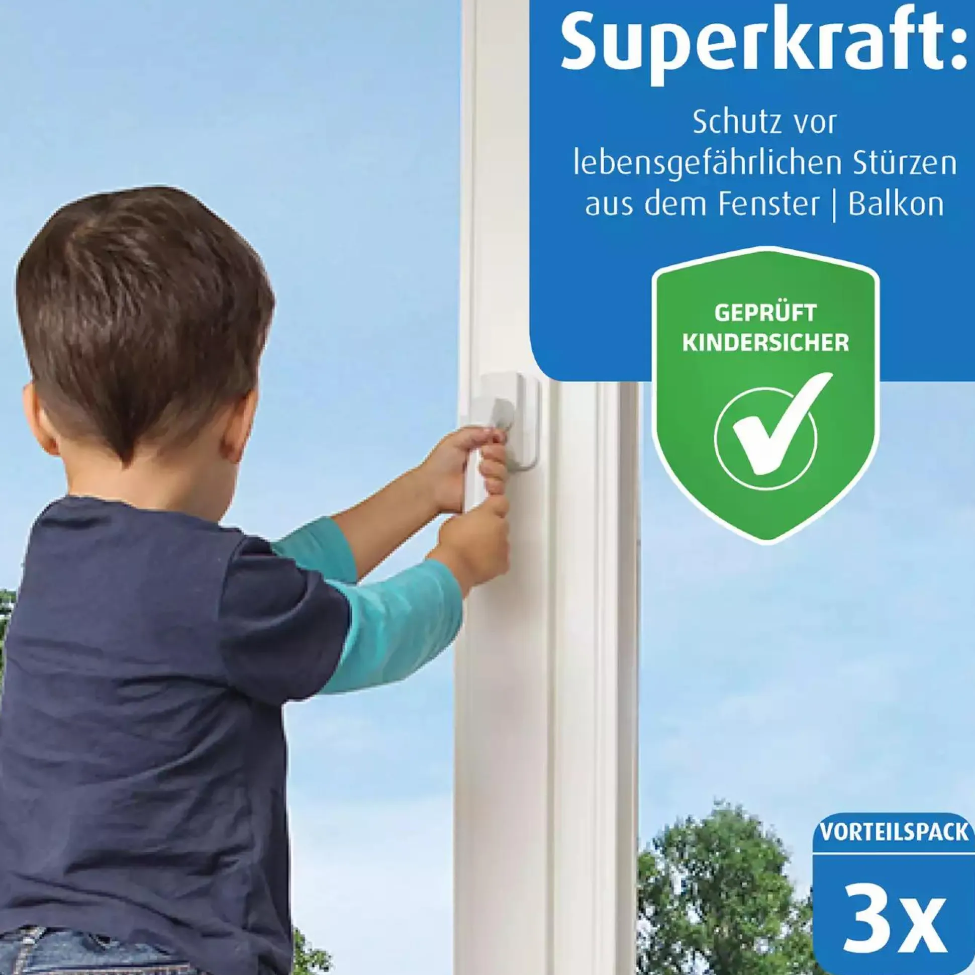 - kindersicherer Verschlussmechanismus verriegelt Fenster und Balkontüren in geschlossener oder gekippter Stellung