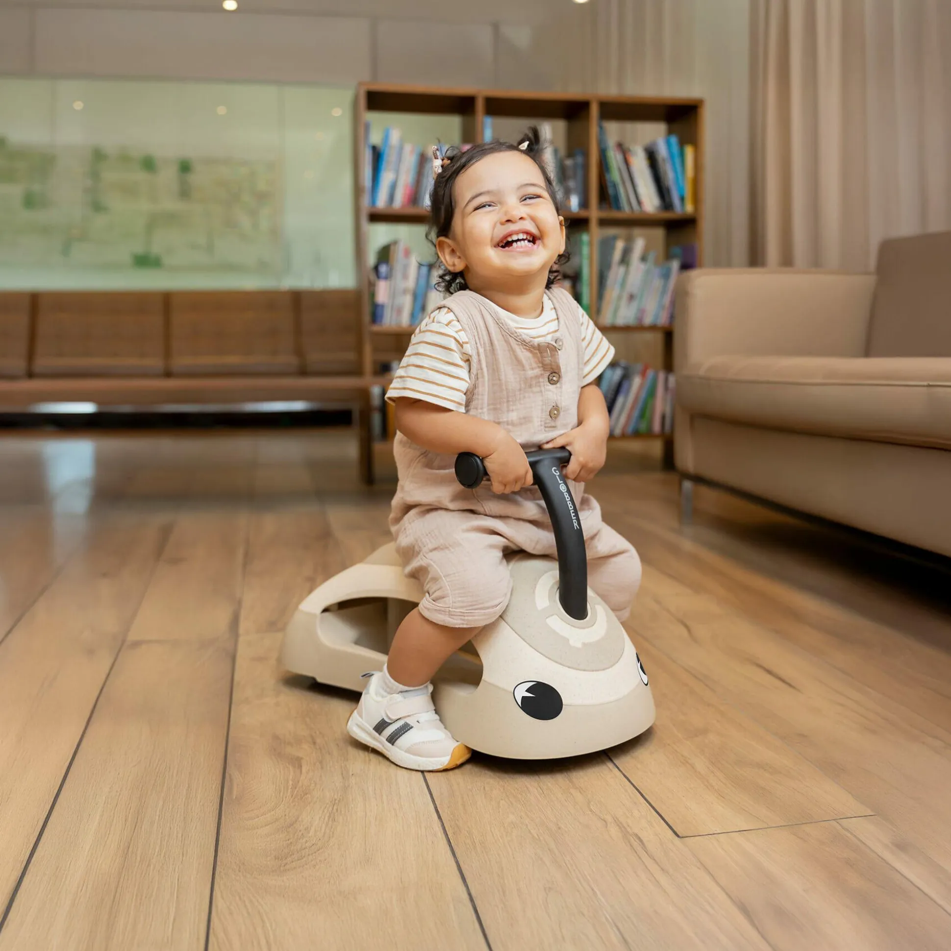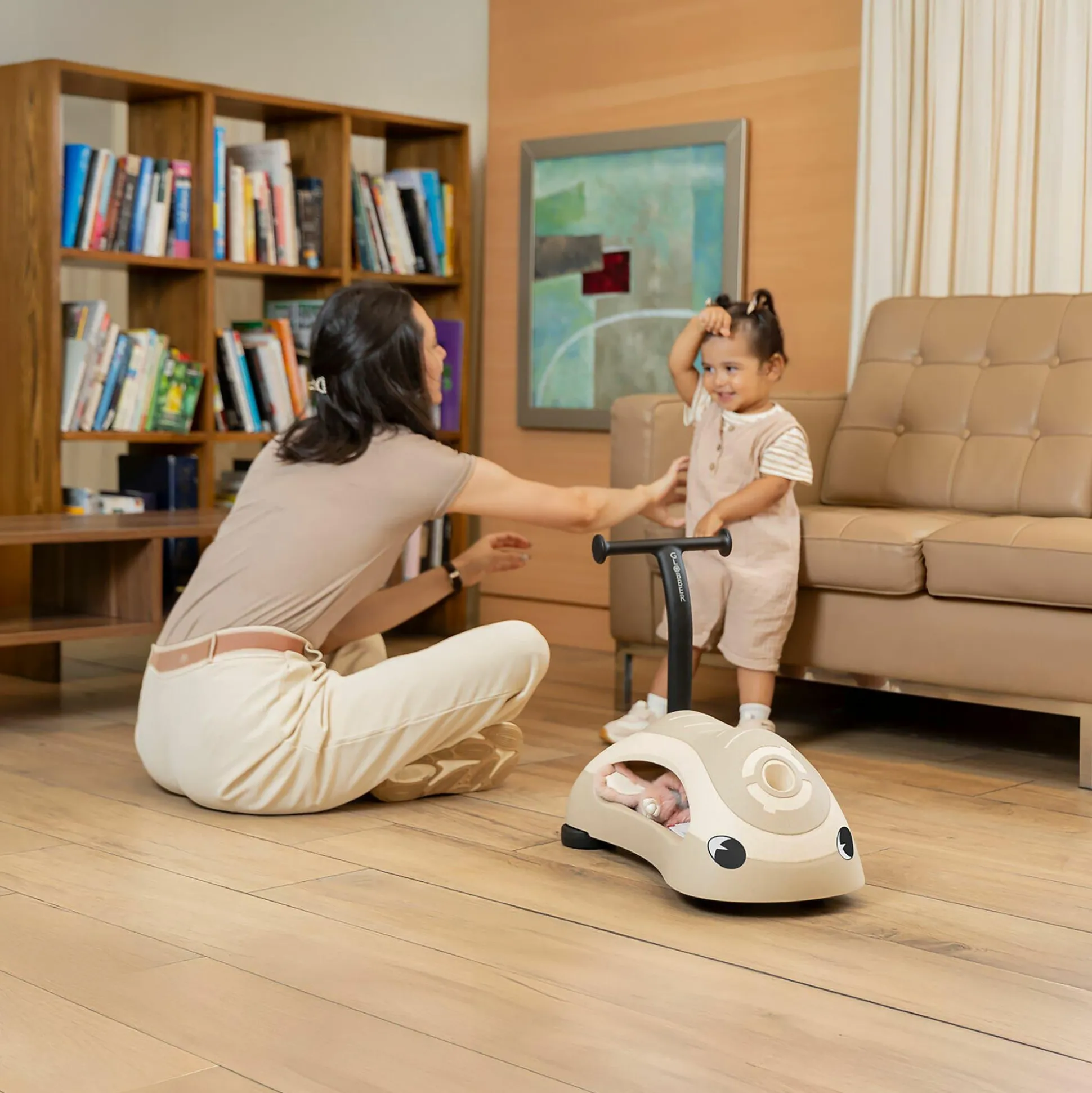 Im Fahrmodus klappst du die Hinterräder ein, sodass dein Kind sanftes, müheloses Gleiten genießen kann. Im Lauflernmodus stellst du sie aus, um sicheren Widerstand und Stabilität bei den ersten Schritten zu bieten. Das kratzfeste Design sorgt für geräuscharmes, rutschfestes Fahrvergnügen.