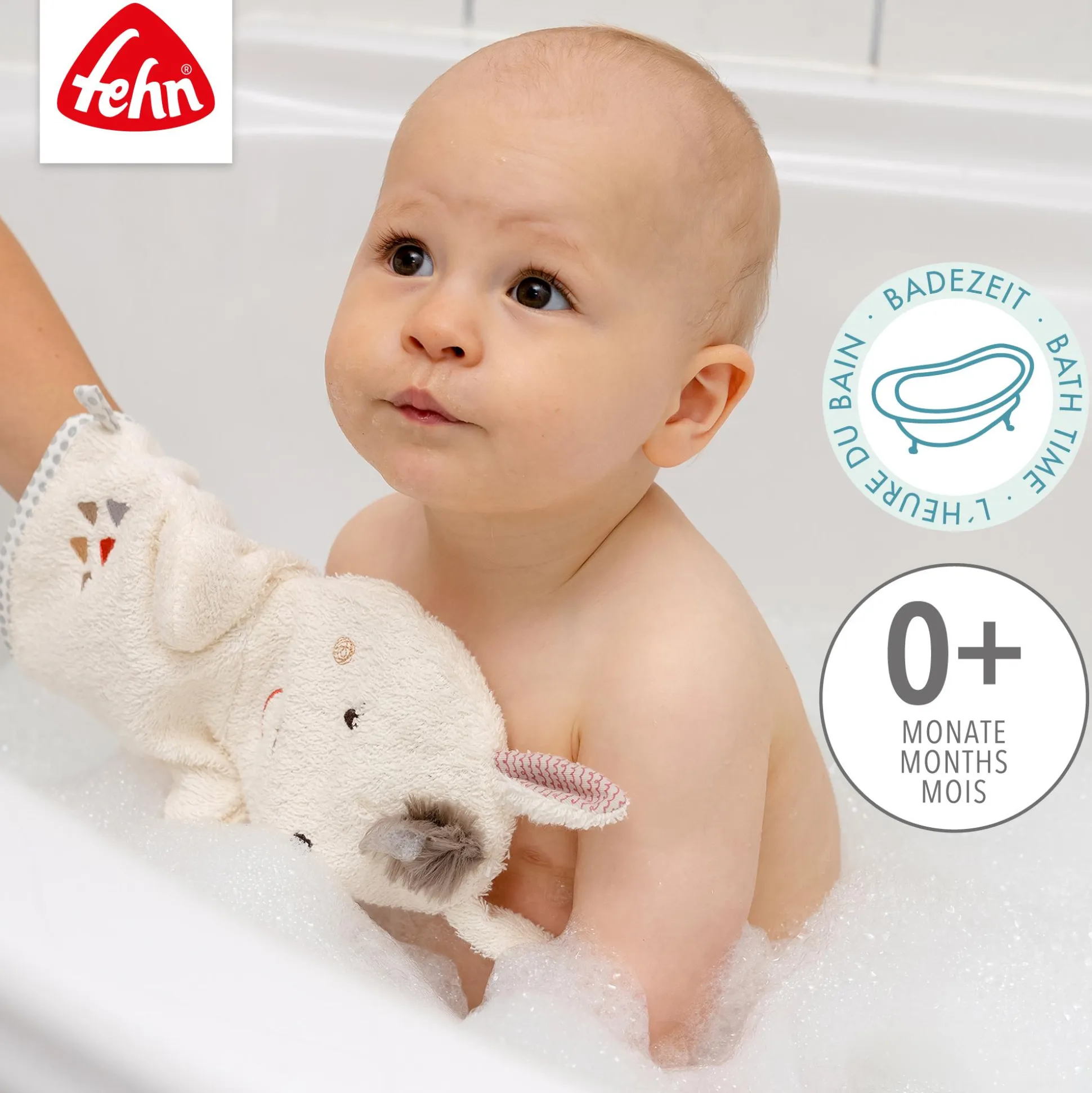 Der kuschelweiche Handtuchfrottee ist besonders weich zu Babys Haut, reinigt schonend und sorgt für jede Menge fröhlichen Bade- sowie Spielspaß. Für glückliches Strahlen in Babys Gesicht von Geburt an sorgen die liebevollen Details, die den Waschlappen von fehn zum echten Hingucker machen – selbst wenn das kleine Lama zum Trocknen an der Schlaufe im Badezimmer hängt.