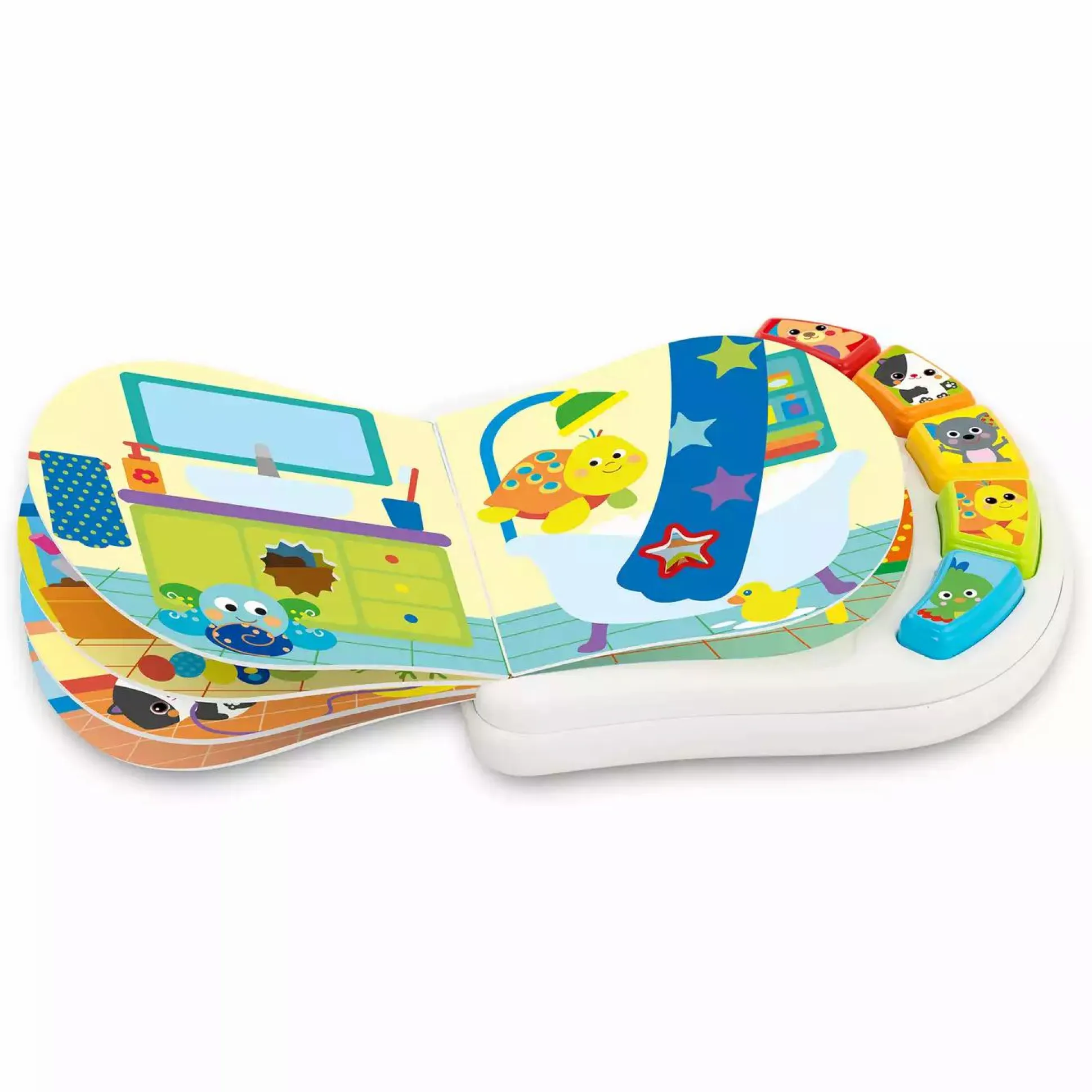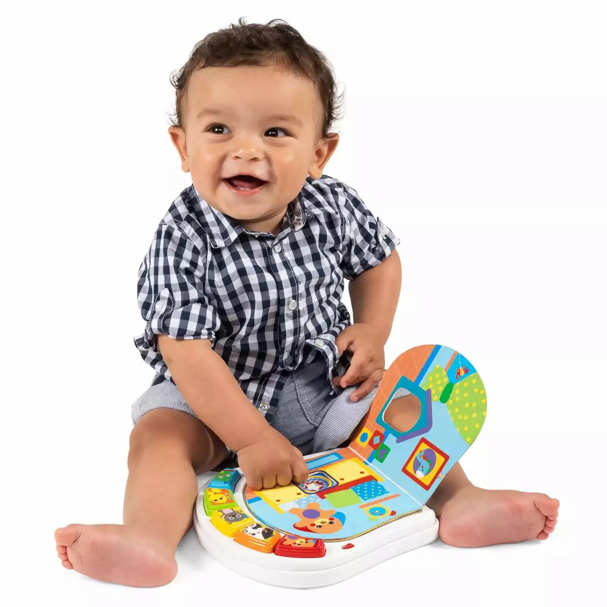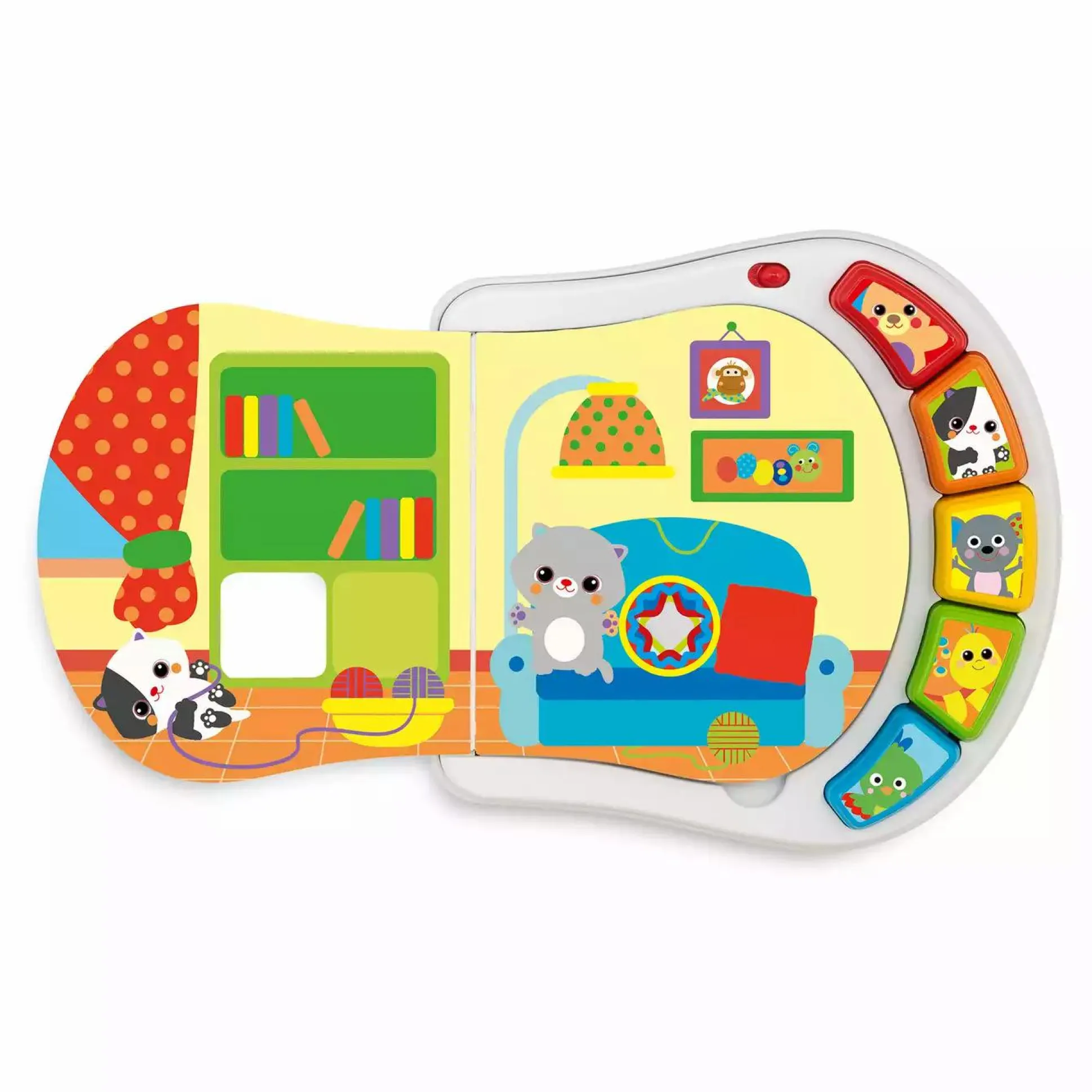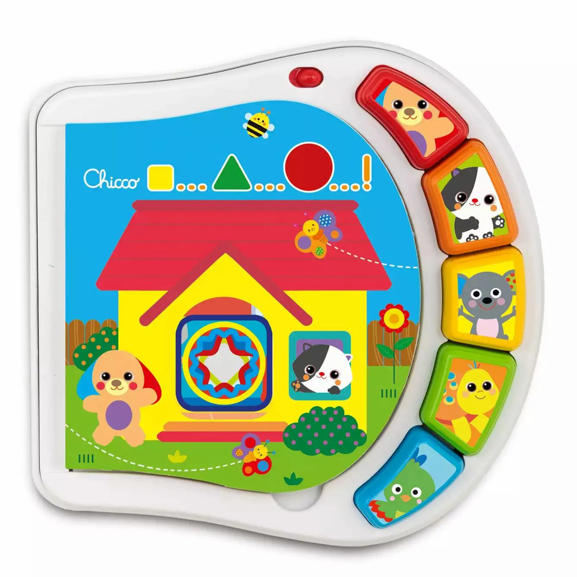 Dieses elektronische Buch aus Kunststoff und Kartonseiten macht es für Kinder spielend einfach die ersten Formen sowie Tiere und deren Geräusche zu lernen. Jedes auf den Seiten gefundene Tier entspricht einem Knopf, den das Kind drücken kann, um seinen Klang zu hören. Ideal für die Kleinen, um mit allen fünf Sinnen zu erkunden. Das chicco Welpenhaus Buch lässt sich dank der Lochungen ganz einfach mit dem Finger umblättern.