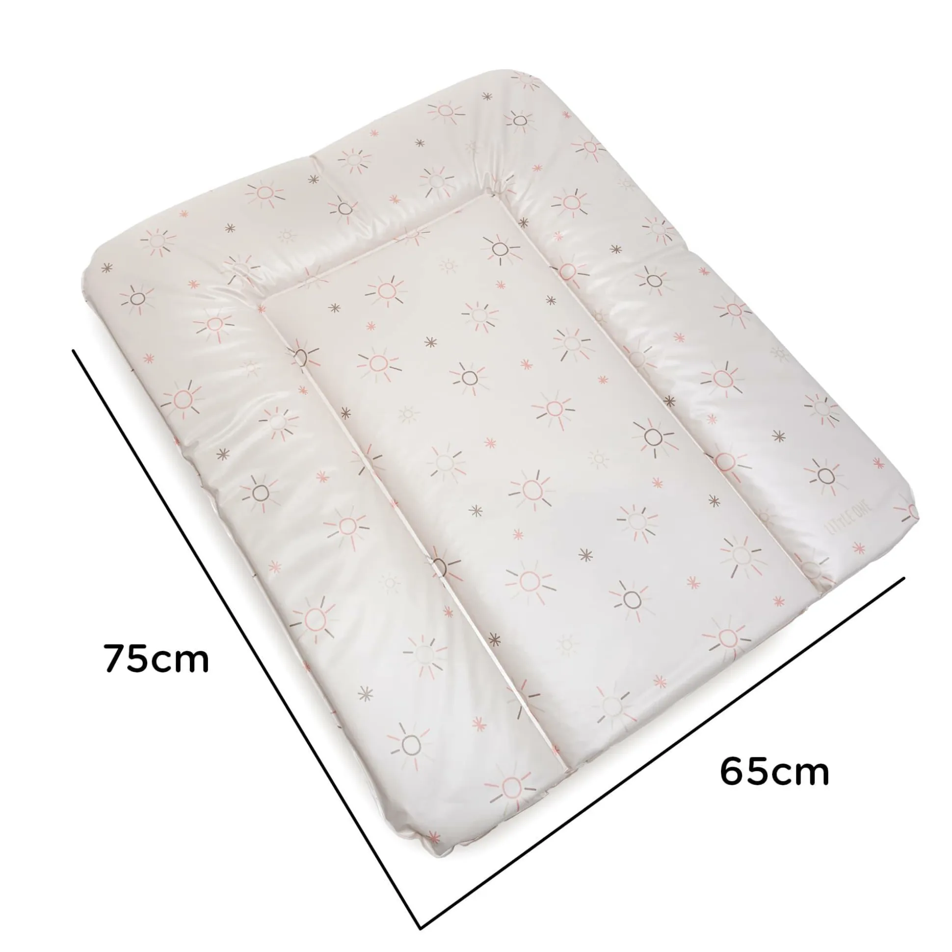 Die Wickelauflage im wunderschönen Design Sunshine von LITTLE ONE bietet mit ihrer weichen Polsterung aus Polyestervlies einen sicheren und bequemen Platz zum Wickeln deines Lieblings.Darüber hinaus passt sie auf viele gängige Wickelkommoden und schützt dank ihrer erhöhten Seitenränder zuverlässig vor harten Kanten.Das hautfreundliche, antibakterielle Material ist wasserabweisend und lässt sich ganz einfach mit einem feuchten Tuch reinigen – ideal für den täglichen Gebrauch und ein stressfreies Wickeln deines Lieblings.