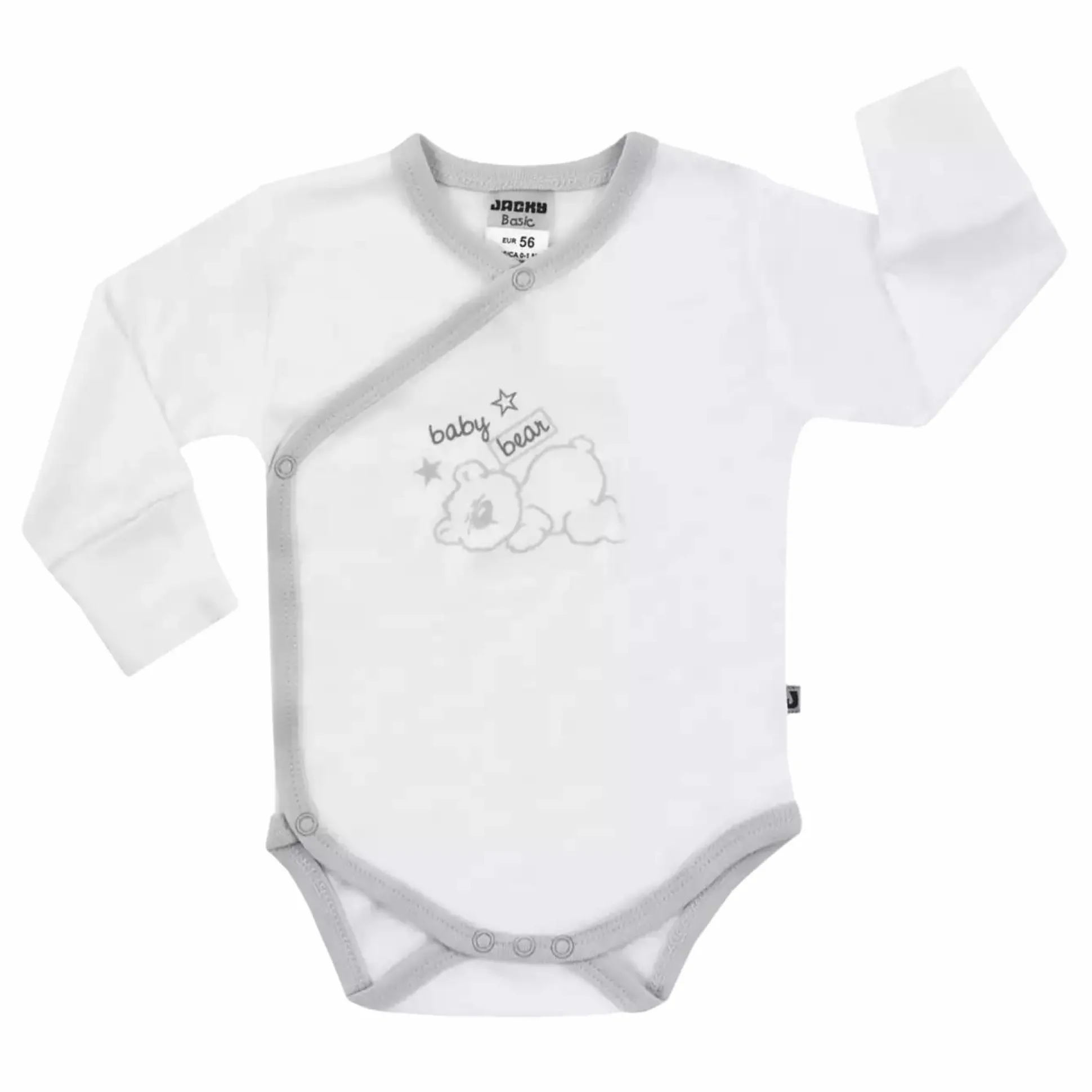 Der niedliche Langarm Wickelbody von Jacky besteht aus 100% Lyoncell / TENCEL. TENCEL ist sanft wie Seide, kühlend wie Leinen und weich wie Wolle. Der Body besitzt praktische Kratzfäustlinge zum Schutz vor Kratzern. Die Druckknöpfe im Beinbereich erleichtern dir und deinem Baby das An- und Ausziehen. Die seitlichen Druckknöpfe ermöglichen zusätzlich das komplette Öffnen des Bodys.