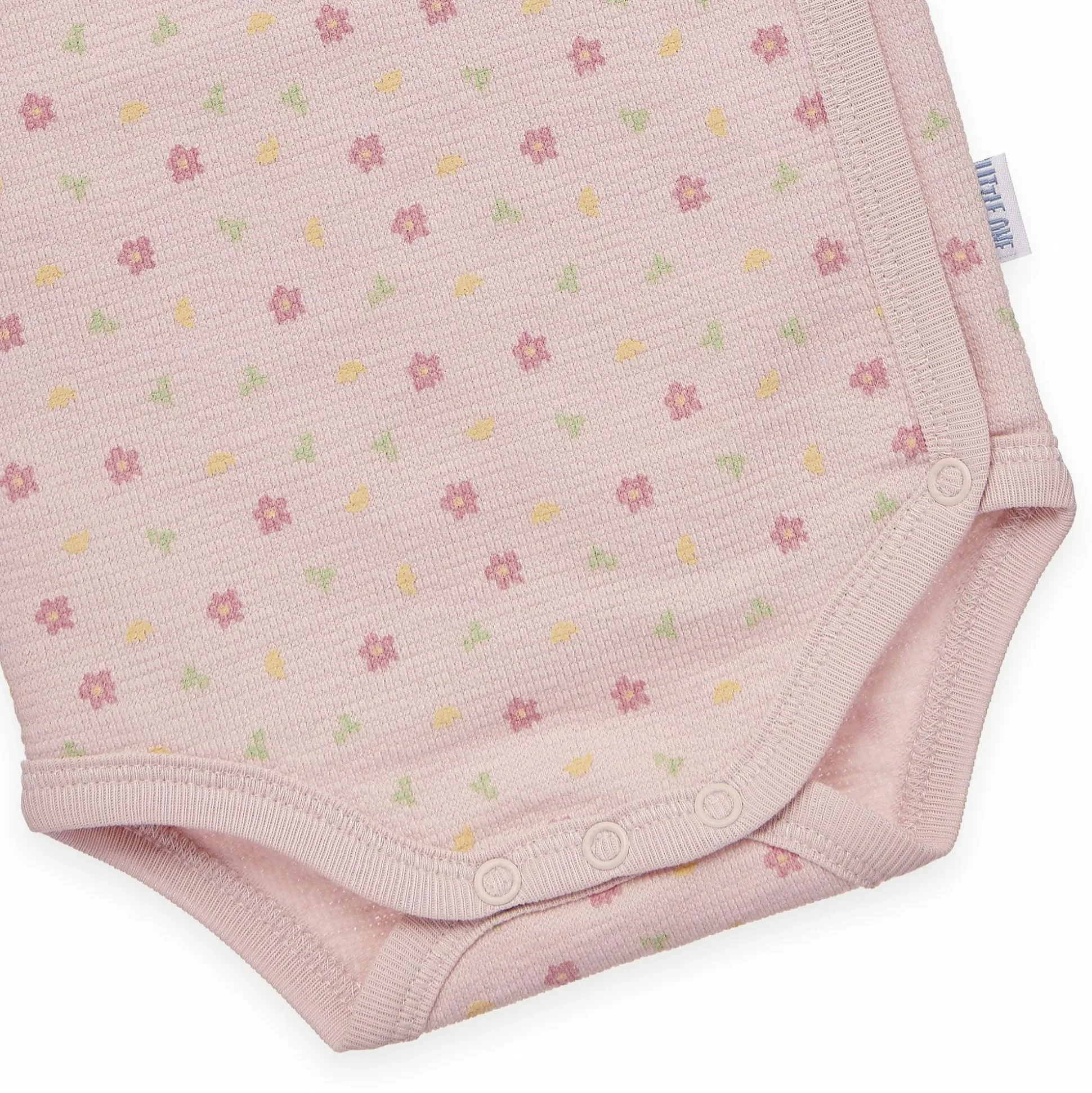 Der Wickelbody Blümchen von LITTLE ONE ist aus 100% hochwertiger Bio-Baumwolle gefertigt und überzeugt durch sein weiches, angenehmes Tragegefühl. Das praktische Wickeldesign mit Druckknöpfen erleichtert dir das einfache An- und Ausziehen deines kleinen Schatzes.