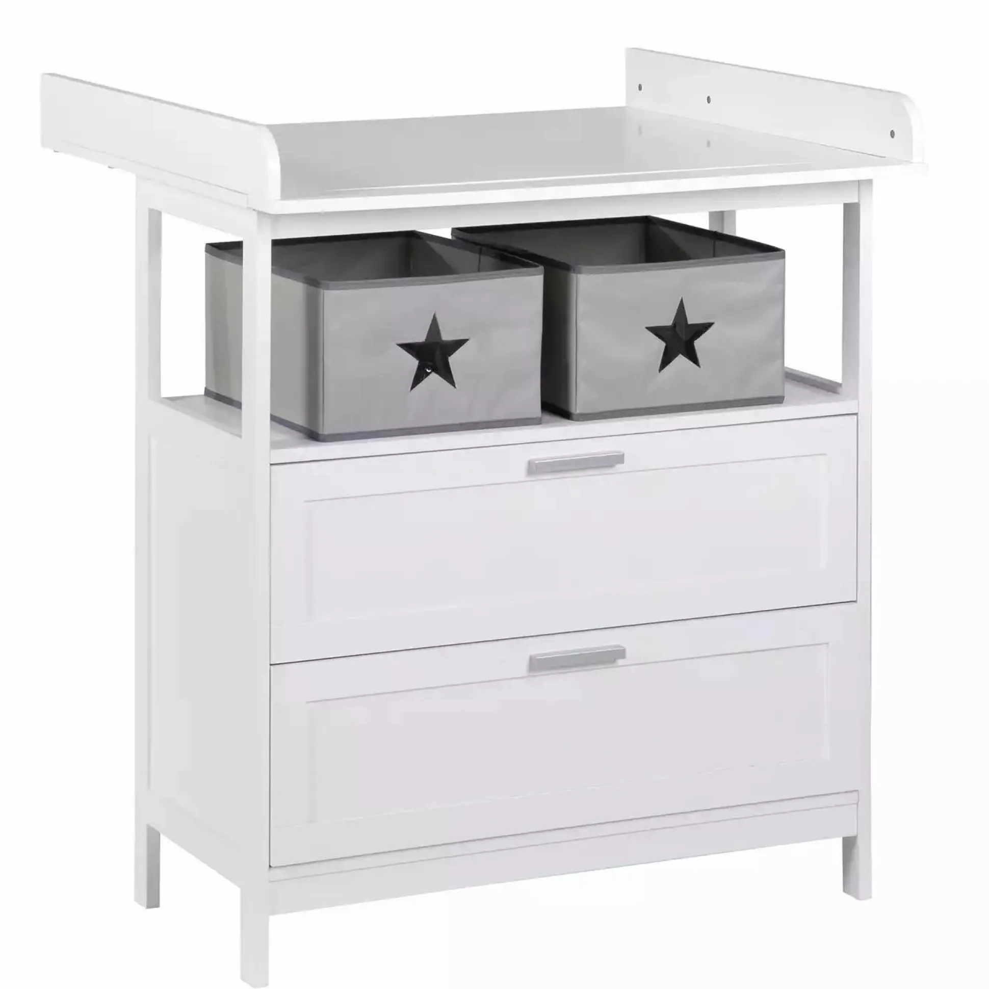 - Lieferumfang: 1x Wickelkommode Weiß, 1x Wickelaufsatz, 2x Canvas Boxen und Wandbefestigung