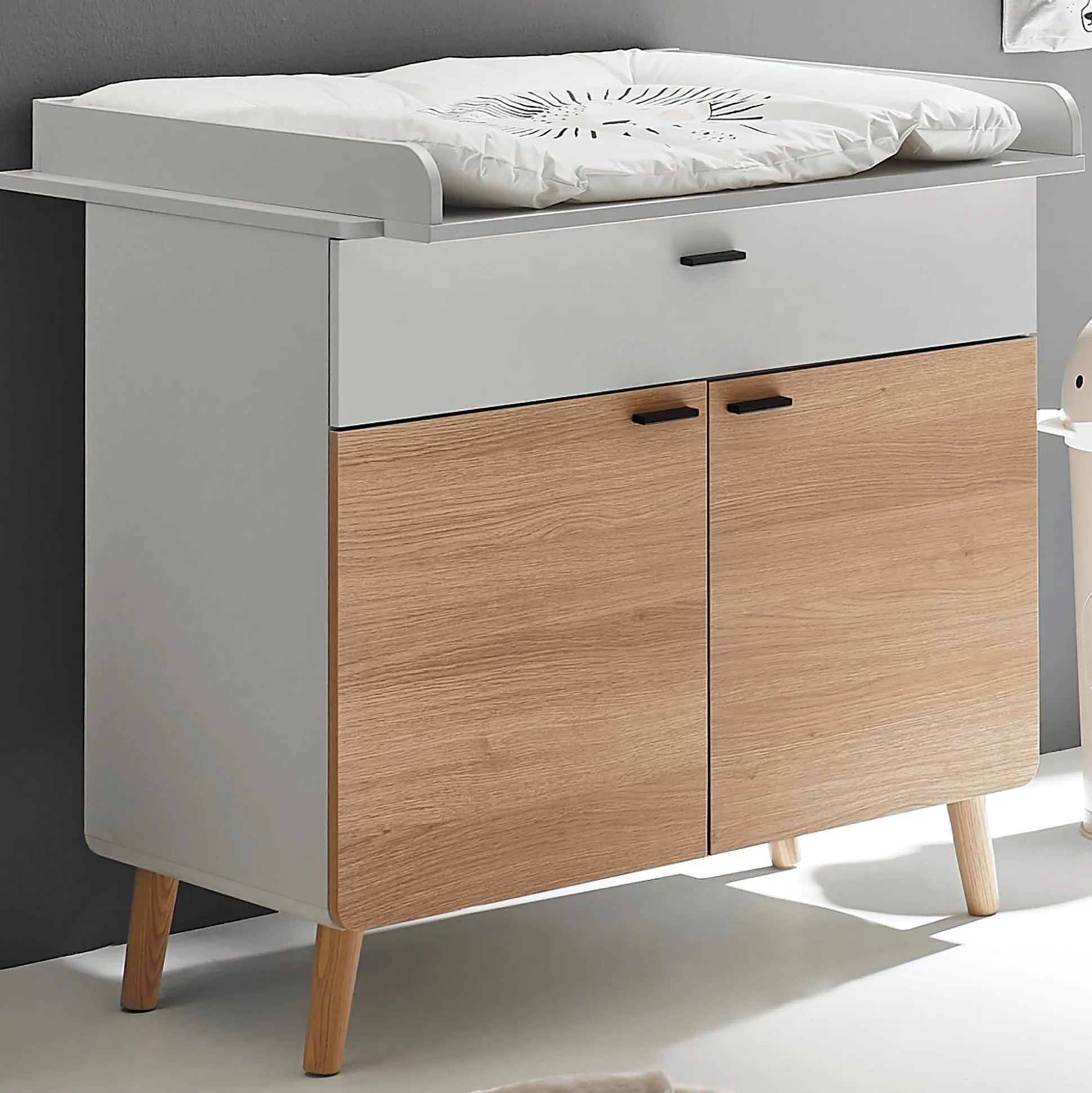 Die Wickelkommode Lovis schmal von Arthur Berndt ist die ideale Lösung für ein platzsparendes und stilvolles Wickeln im Kinderzimmer. Mit einer großzügigen Wickelfläche von ca. 75 x 85 cm bietet sie ausreichend Platz, um dein Baby bequem und sicher zu wickeln. Hinter den zwei Türen befindet sich ein Boden, der zusätzlichen Stauraum für Windeln, Pflegeprodukte und Kleidung bietet. Ein großer Schubkasten mit Self-Soft-Close und Vollauszug sorgt dafür, dass du alles Nötige schnell zur Hand hast, während der Mitteltrennsteg im Schubkasten für eine bessere Übersicht sorgt.