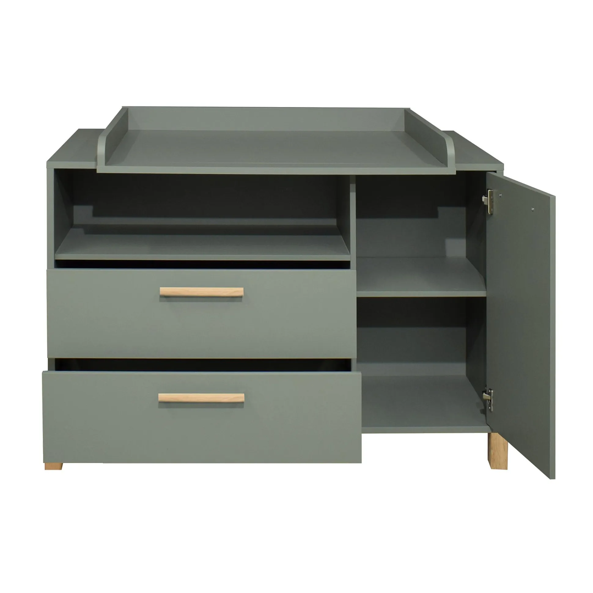 Sie ist aber nicht nur funktional: Auch das Design fügt sich hervorragend in jedes Kinderzimmer ein, denn das matte Kieferngrün der Wickelkommode verleiht jedem Raum eine gemütliche Atmosphäre.