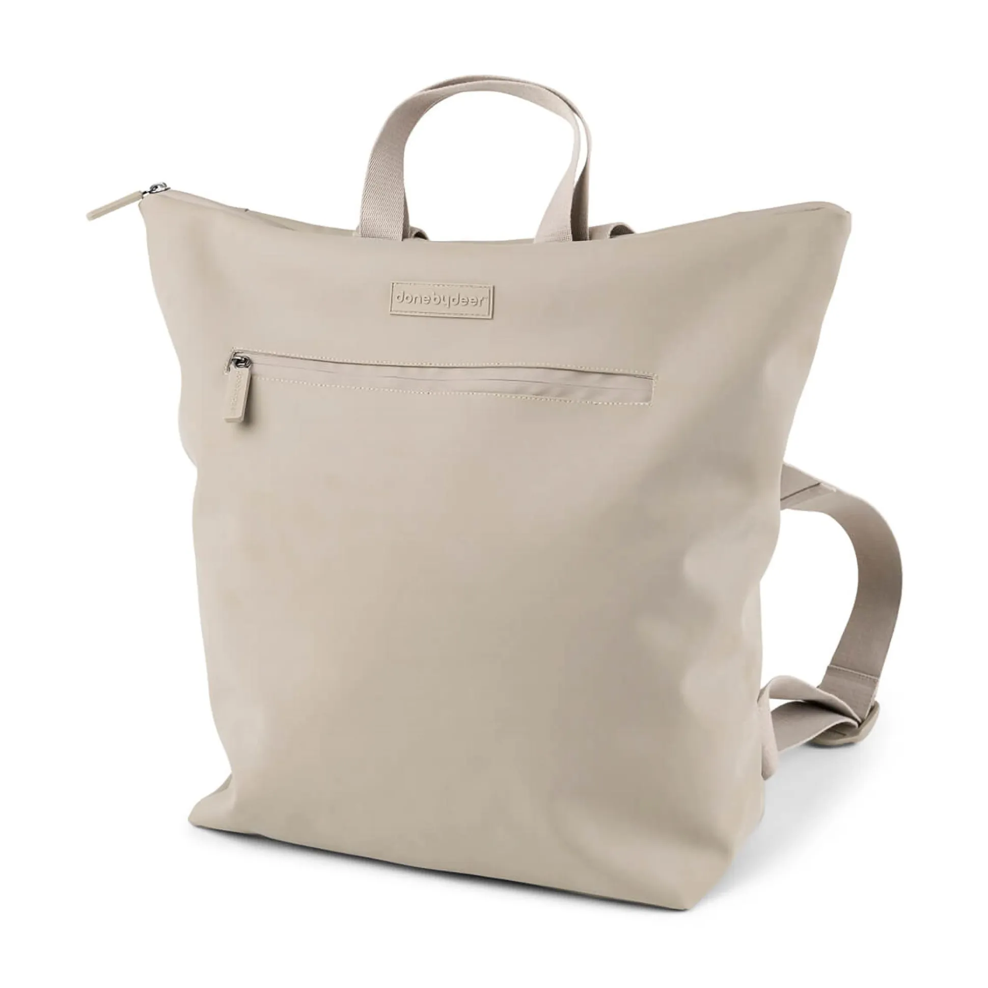 Der Wickelrucksack von done by deer kombiniert Funktionalität mit langlebigem Design. Bei der Herstellung des Außenmaterials und des Innenfutters wurden 38 PET-Flaschen recycelt, was den Rucksack zu einer umweltfreundlichen Wahl macht.Der geräumige Rucksack in elegantem Sand-Design bietet dir die Möglichkeit, alle deine wichtigen Babyutensilien mitzunehmen. Dank der breiten Öffnung hast du einfachen Zugang, während die sieben Innenfächer und eine äußere Reißverschlusstasche das Organisieren zum Kinderspiel machen.