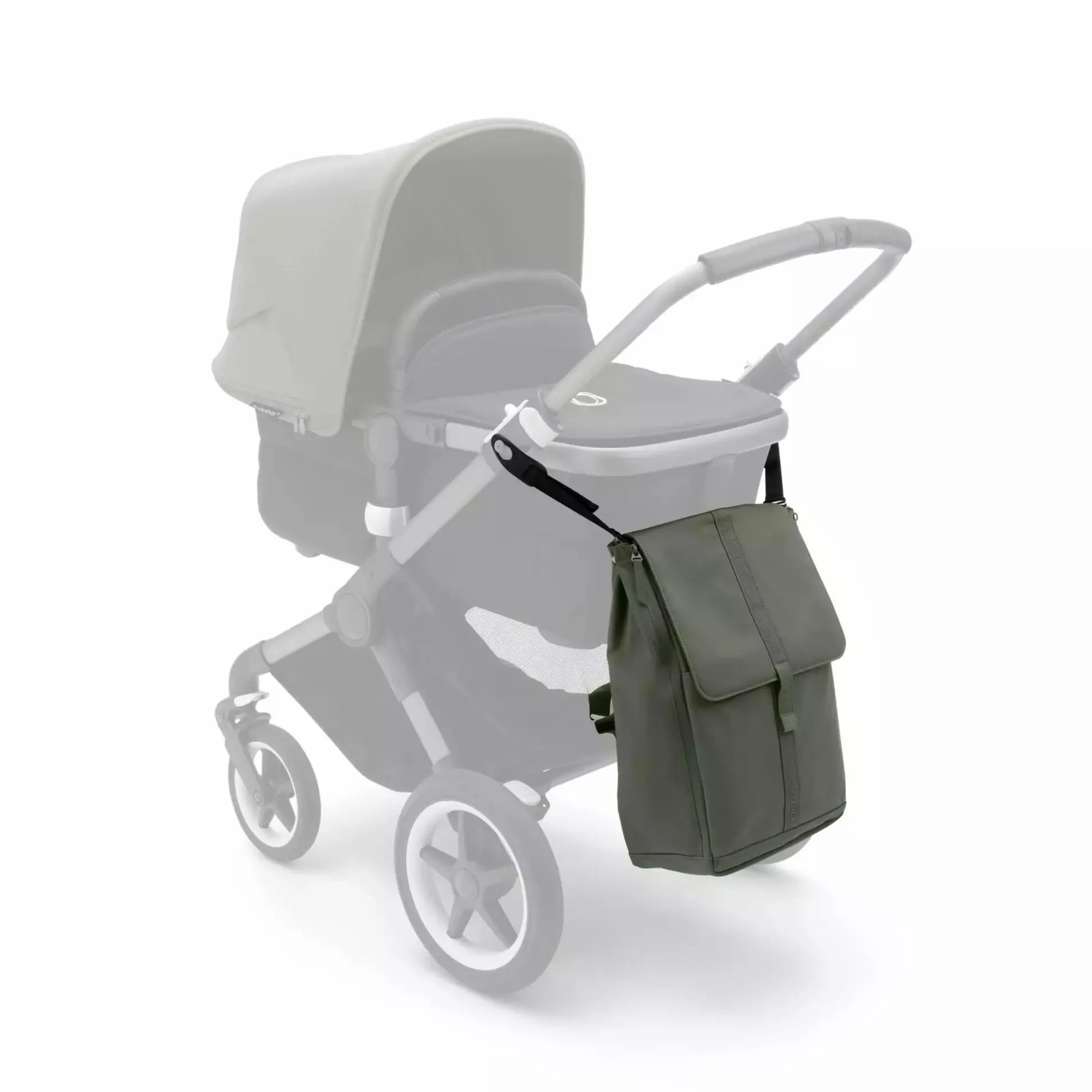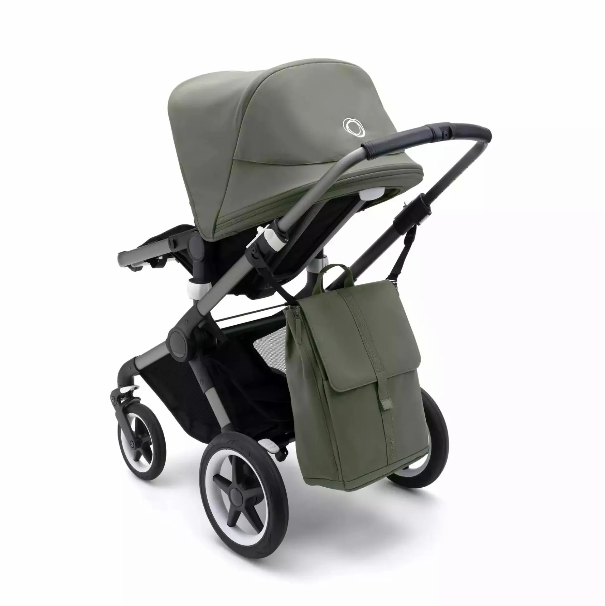 Der Wickelrucksack Forest Green von Bugaboo ist aus 100 % zertifizierten recycelten Materialien gefertigt. Er ist zudem außen regenfest sowie wasserabweisend, innen auslaufsicher und passt perfekt auf deinen Bugaboo Kinderwagen.