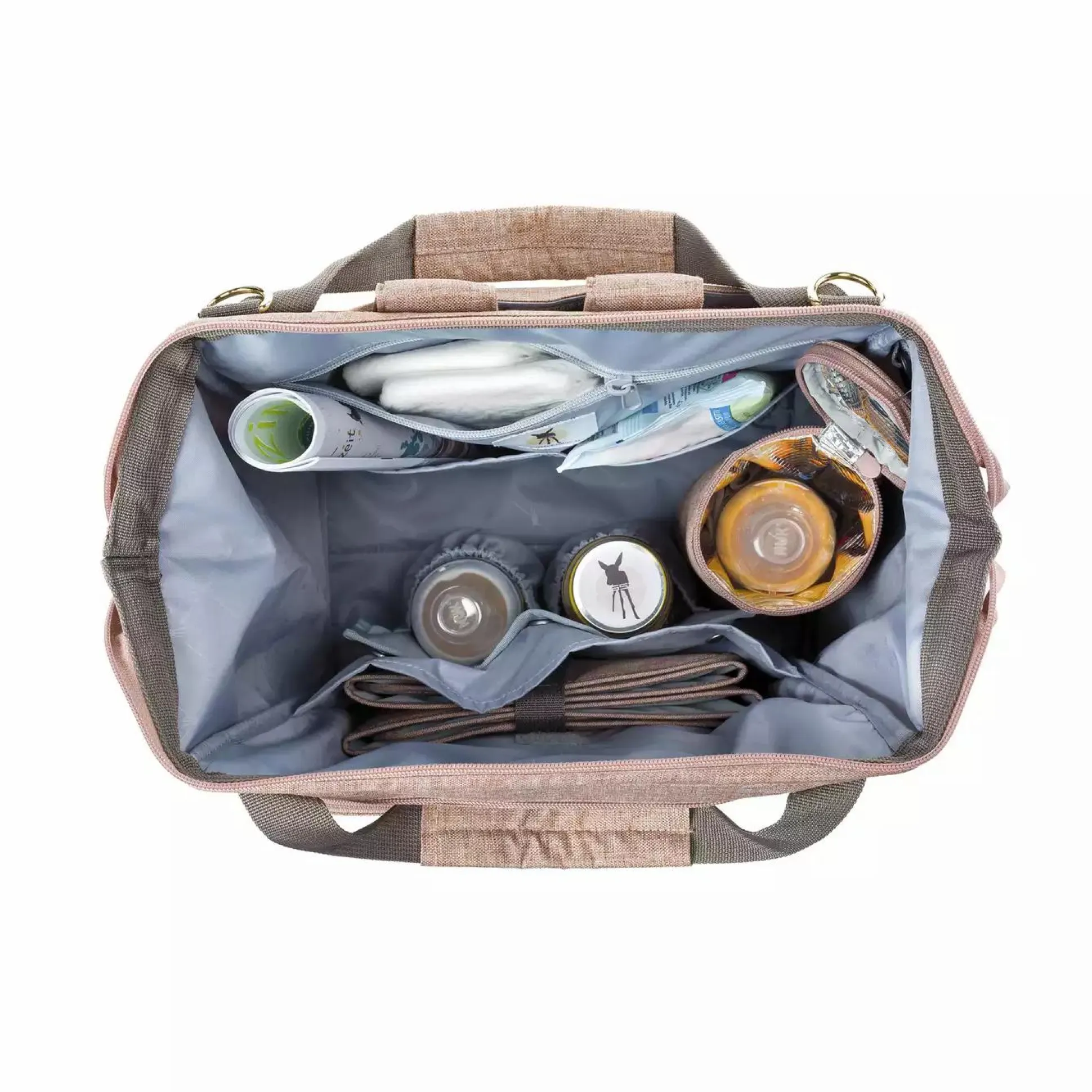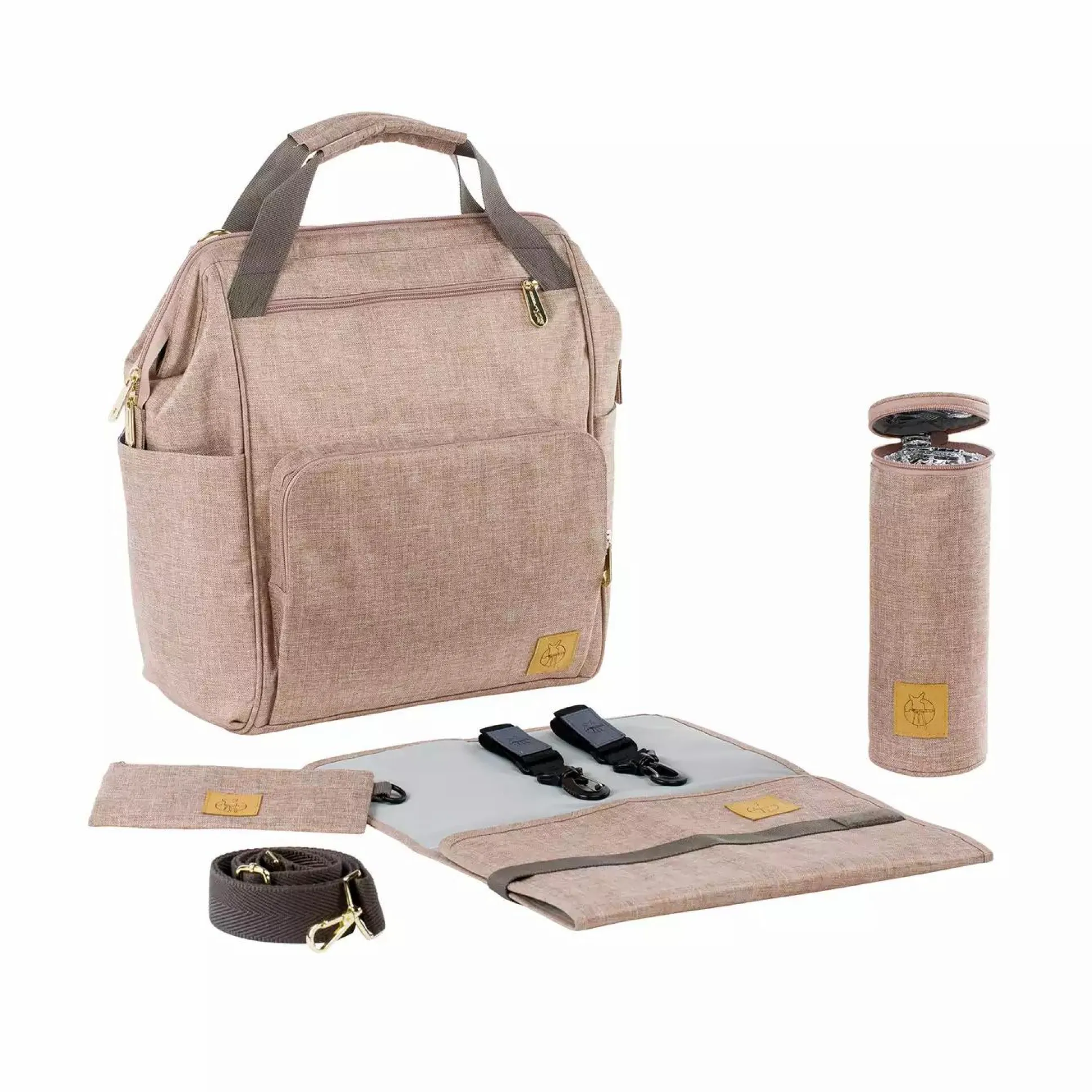 Der Goldie Backpack von Lässig kann als Wickelrucksack und mit dem längenverstellbarer Schultergurt als Wickeltasche getragen werden. So kann die Wickeltasche am Kinderwagen oder Fahrradanhänger befestigt werden für maximalen Tragekomfort und schont so zusätzlich den Rücken. Durch den praktischen Arztkoffer-Verschluss und eine übersichtliche Aufteilung im Inneren hat man alles sofort griffbereit. Der Lässig Wickelrucksack besitzt viele geräumige Fächer und Taschen, wie ein großes Hauptfach, zusätzliche Staufächer außen sowie innen, eine Utensilientasche, ein wasserabweisendes Feuchtfach und ein integriertes Handyfach. Zudem ist der Goldie mit einer wasserabweisenden Wickelunterlage, einem isolierten, herausnehmbaren Flaschenhalter, einer herausnehmbaren Gläschenhalterung, einer Kinderwagenbefestigung, Stiftehalterung und Schlüsselfinder ausgestattet. Allem in allem hast du genug Stauraum und alles mit, was dein Baby braucht.