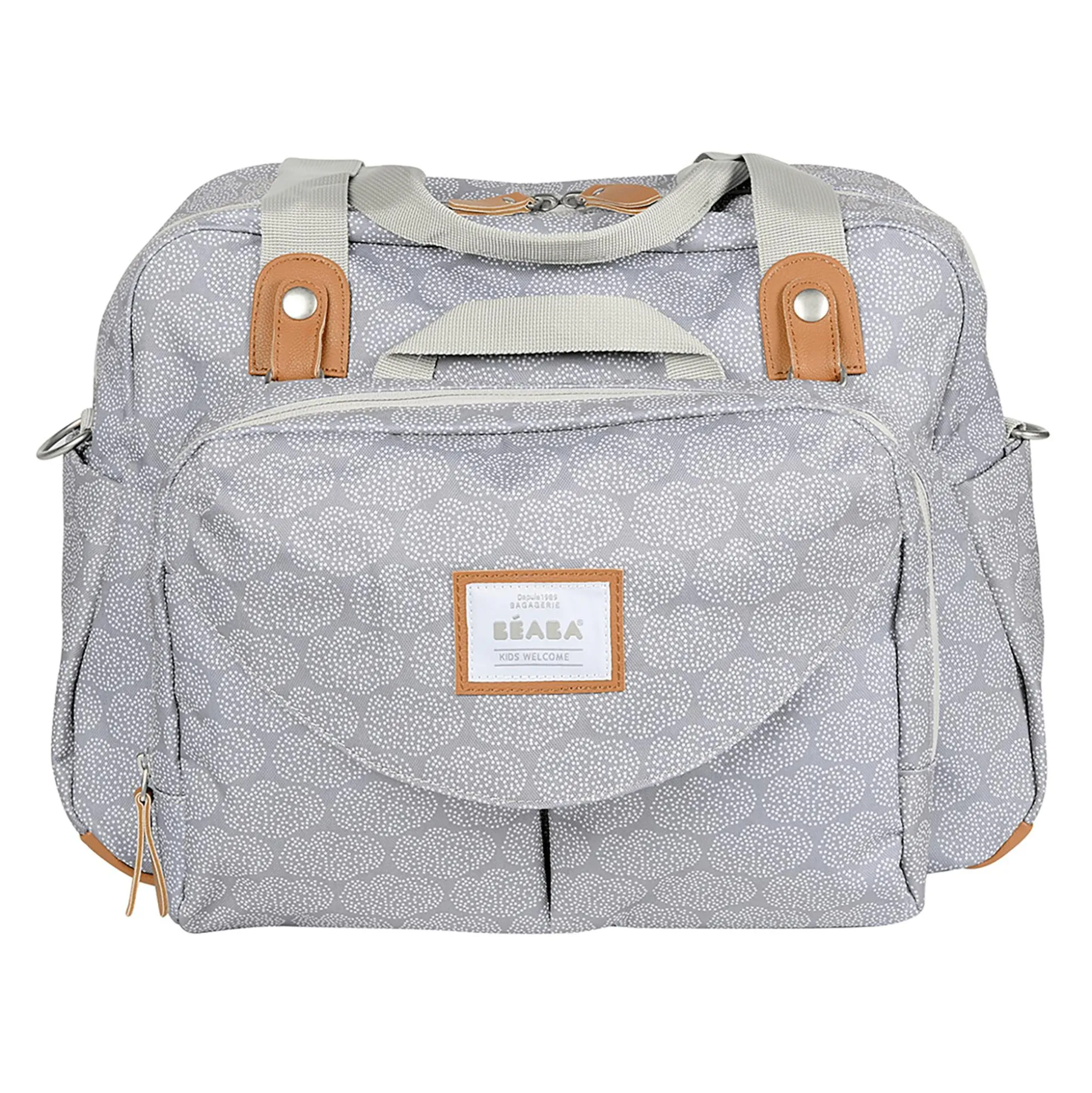 Die Wickeltasche Geneve II im Design Playprint Tiny Clouds von BÉABA ist ein praktischer Begleiter auf Reisen und erleichtert deinen Alltag. Eine gepolsterte, waschbare Wickelunterlage, eine Schnullertasche und eine isothermische Essenstasche erhältst du inklusive.