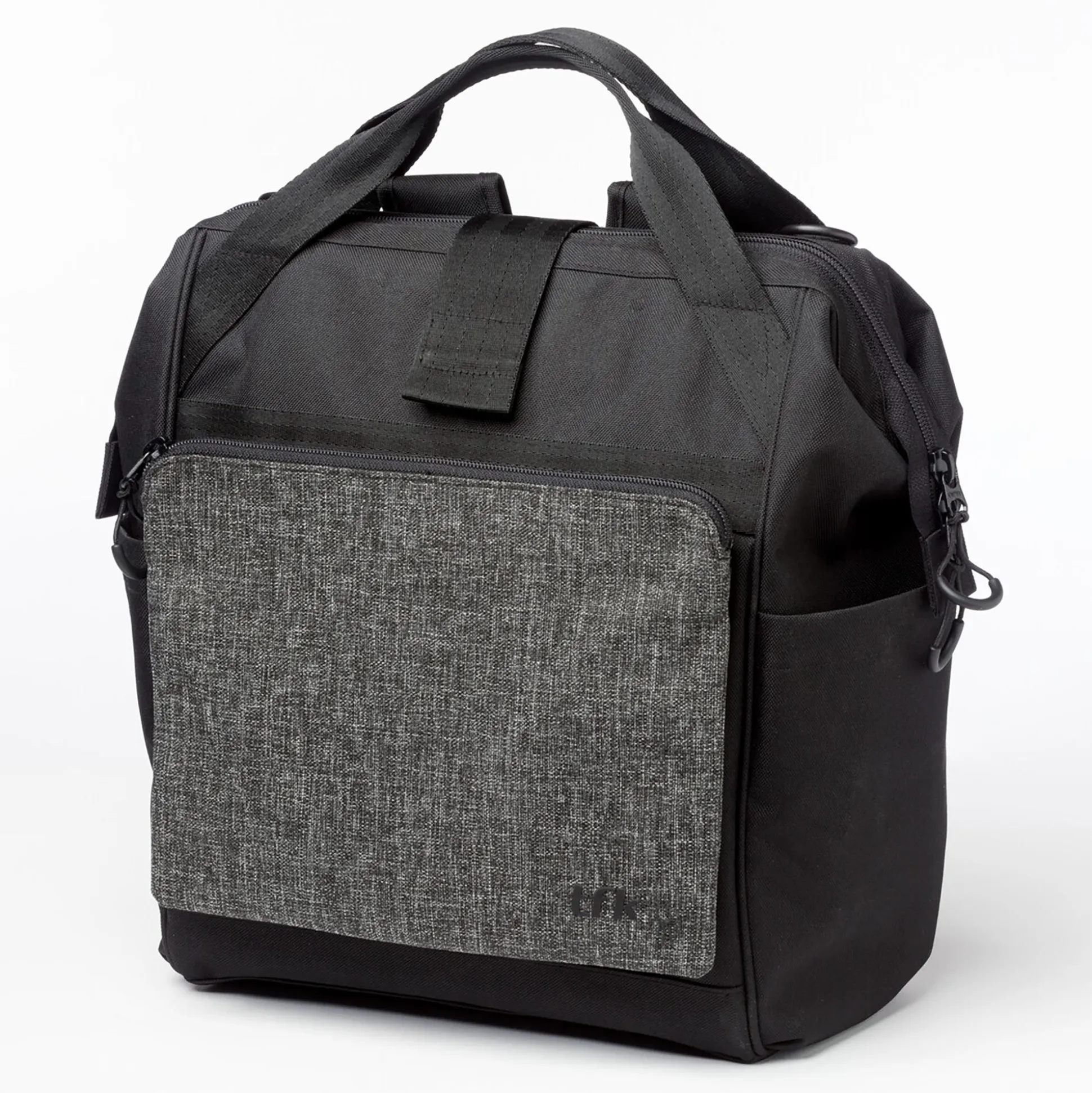 Genauso überzeugend wie Ausstattung und Funktionalität sind die verschiedenen Tragemöglichkeiten: So lässt sich die Wickeltasche von tfk respektive Lässig nicht nur als Tasche tragen, sondern dank der (unsichtbar verstaubaren) Schulterriemen auch als Rucksack für ein rückenschonendes Tragen. Noch komfortabler ist es allerdings, die Arbeit dem Kinderwagen zu überlassen: Für einen rundum mühelosen Transport lässt sich die Wickeltasche mittels der (im Lieferumfang enthaltenen) Befestigungshaken einfach und schnell am Schiebergriff anbringen.