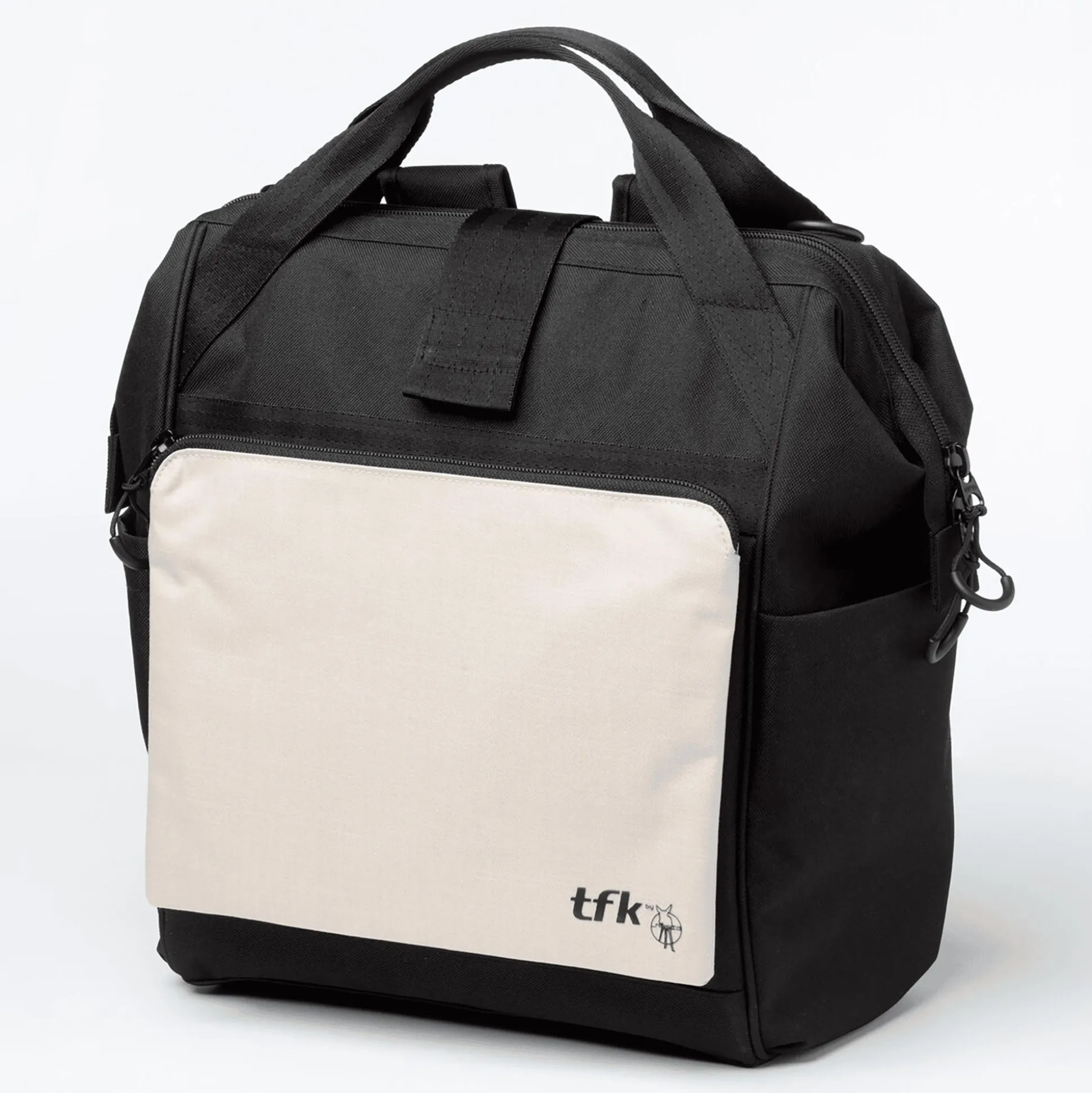 Genauso überzeugend wie Ausstattung und Funktionalität sind die verschiedenen Tragemöglichkeiten: So lässt sich die Wickeltasche von tfk respektive Lässig nicht nur als Tasche tragen, sondern dank der (unsichtbar verstaubaren) Schulterriemen auch als Rucksack für ein rückenschonendes Tragen. Noch komfortabler ist es allerdings, die Arbeit dem Kinderwagen zu überlassen: Für einen rundum mühelosen Transport lässt sich die Wickeltasche mittels der (im Lieferumfang enthaltenen) Befestigungshaken einfach und schnell am Schiebergriff anbringen.