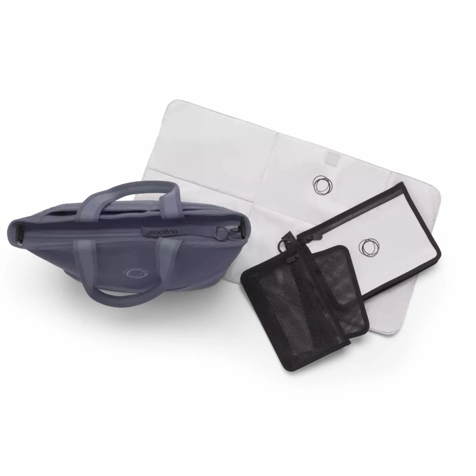 In der Wickeltasche im Design Stormy Blue von bugaboo findest du geräumige Fächer um alles übersichtlich zu verstauen, was du und dein kleiner Schatz unterwegs benötigt. Eine faltbare Wickelunterlage und drei Clutchtaschen erhältst du inklusive.