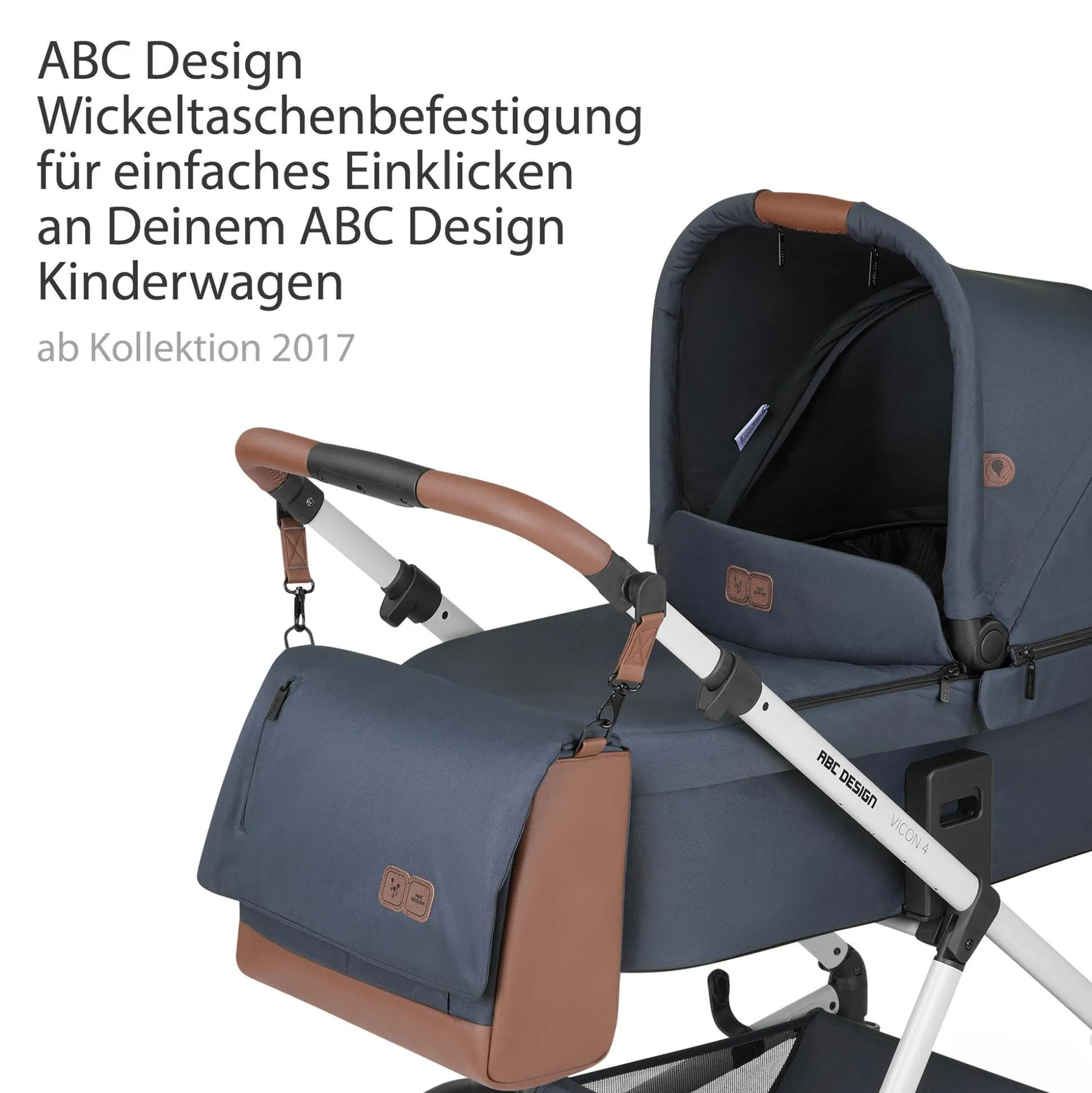 Noch begeisternder ist die innovative Funktionalität, die bereits beim Transportieren beginnt: Damit du die Tasche nicht selbst tragen musst, kommt sie mit einer ABC Design Universal-Befestigung ins Haus. So lässt sich die Wickeltasche mit wenigen Handgriffen am Schiebegriff des Buggys befestigen bzw. abnehmen. Und wenn der Kinderwagen mal zu Hause oder im Auto bleibt, ermöglichen die langen, breiten Trageriemen ein lässiges Über-die-Schulter-hängen.