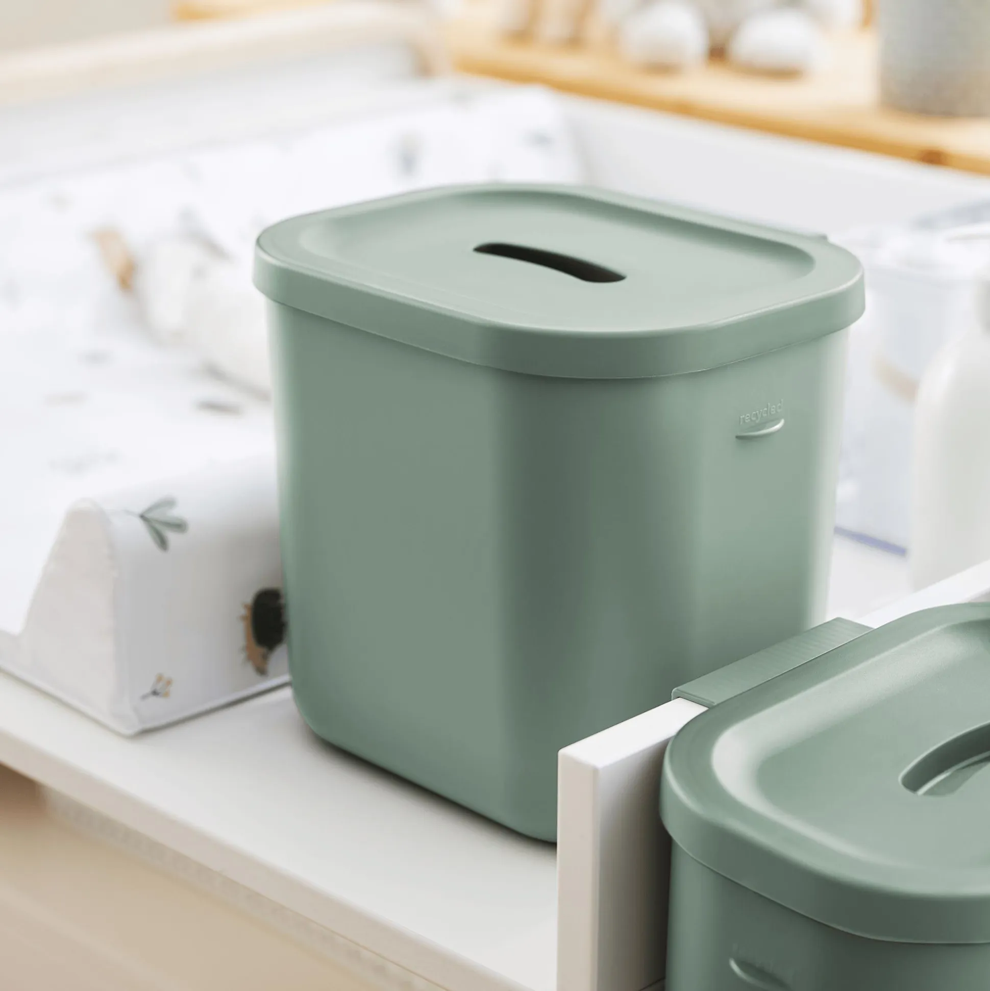 Der Windeleimer KAYO von Rotho ist ein cleverer Helfer für den Wickelalltag. Er wurde entwickelt, um schmutzige Windeln schnell und hygienisch zu sammeln und zu entsorgen. Der abnehmbare Deckel sorgt dafür, dass unangenehme Gerüche zuverlässig im Inneren bleiben. Dank der praktischen Einhand-Bedienung kannst du ihn mühelos öffnen, auch wenn du dein Baby im Arm hältst.