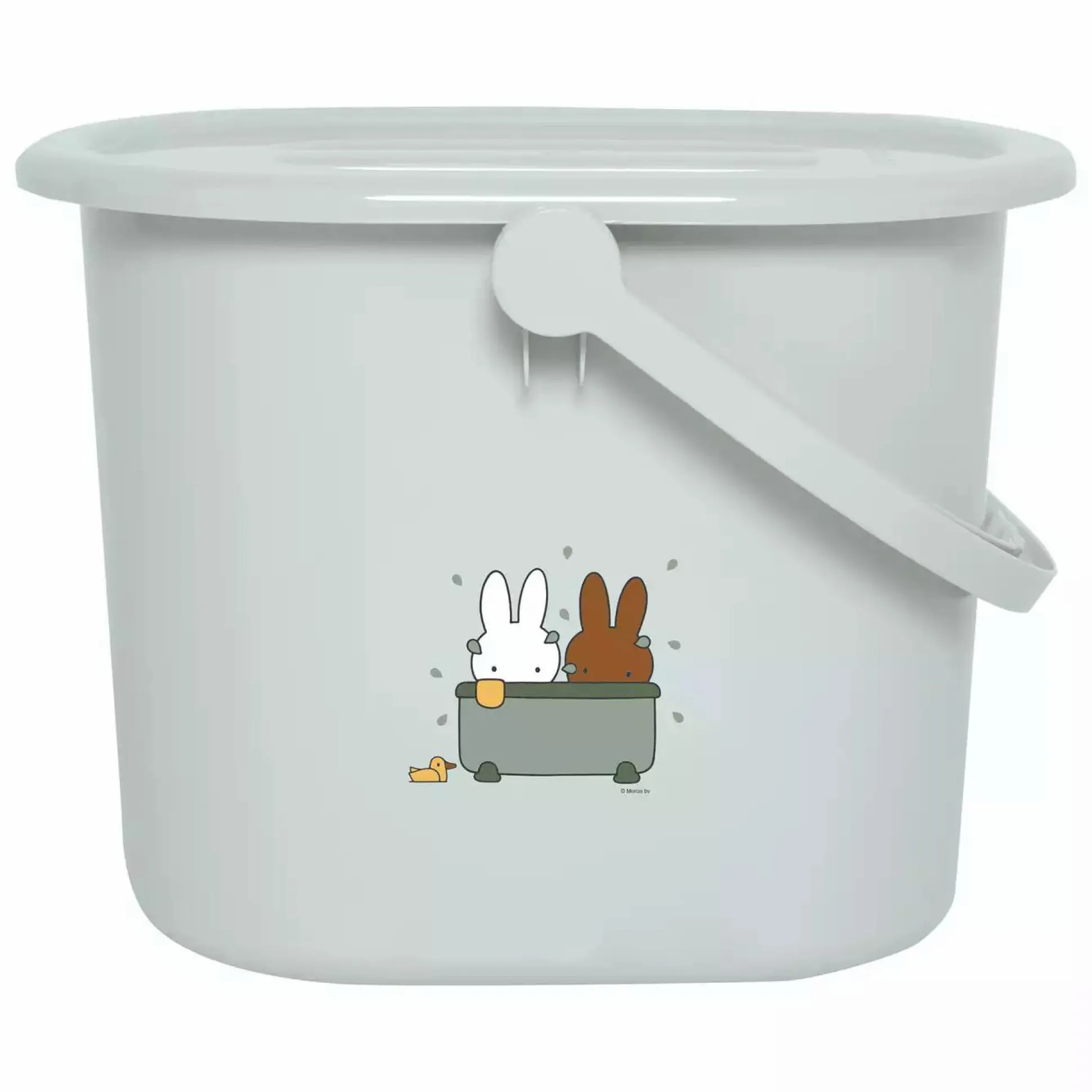 Insgesamt passt ein Fassungsvermögen von ca. 13 Litern in den Windeleimer. Dadurch kannst du die Badewanne von bébé-jou bis zur empfohlenen Höhe füllen. Ein wunderschönes Motiv mit Miffy und Melanie verziert den Eimer.
