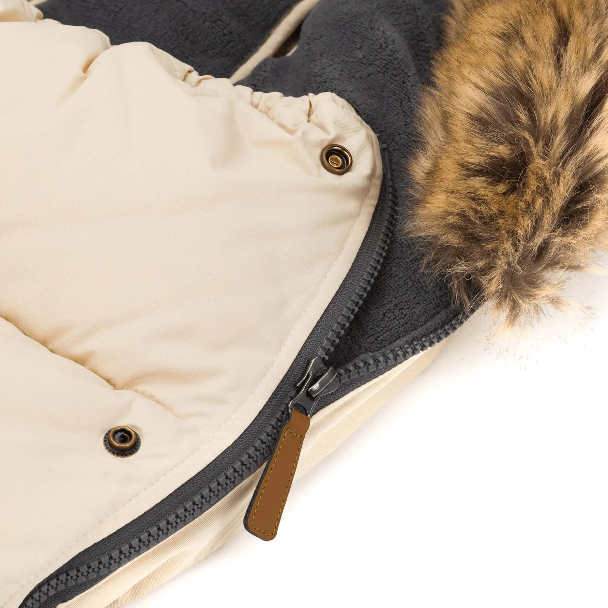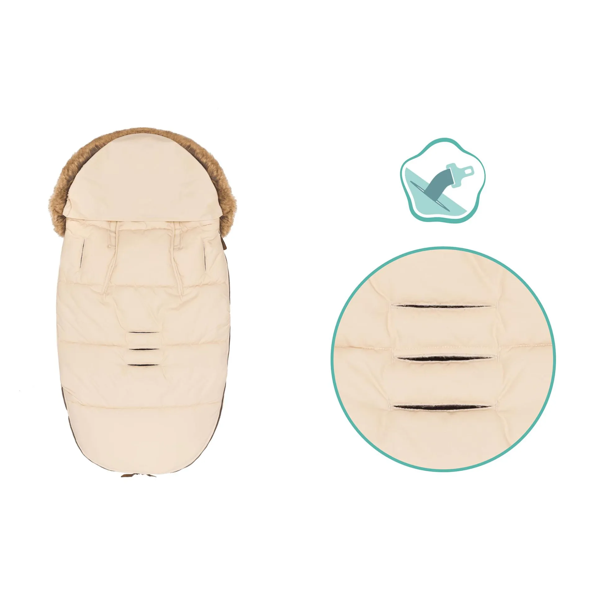 Ein Rundum-Reißverschluss sorgt für eine leichte Handhabung und mit den vielen Gurtschlitzen kannst du den Fußsack flexibel am Kinderwagen, Sportwagen oder Buggy anbringen. Die Coralfleece-Auflage lässt sich einfach abzippen und das Fell kann auch einfach bei Bedarf abgenommen werden.