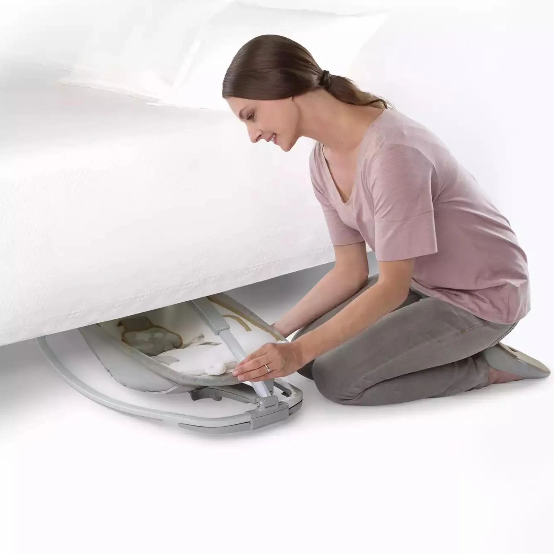 Die hochwertigen, edlen Stoffe und das moderne Design verleihen der Wippe ein besonders schönes Aussehen. Dank der weichen Stoffe wird dein Baby mit einer luxuriösen Weichheit umhüllt. Die Wippe bietet ein zusätzliches Polster und eine Kopfstütze für einen zusätzlichen Halt für die kleineren Babys. Die Kopfstütze kann einfach entfernt werden, wenn dein Baby wächst. Sogar der Sicherheitsgurt ist mit weichen, flauschigen Stoffen umwickelt um die empfindliche Haut deines Babys zu schützen. Diese moderne Wippe lässt sich fast vollständig zusammenklappen, sodass die Lagerung und der Transport einfach verlaufen.