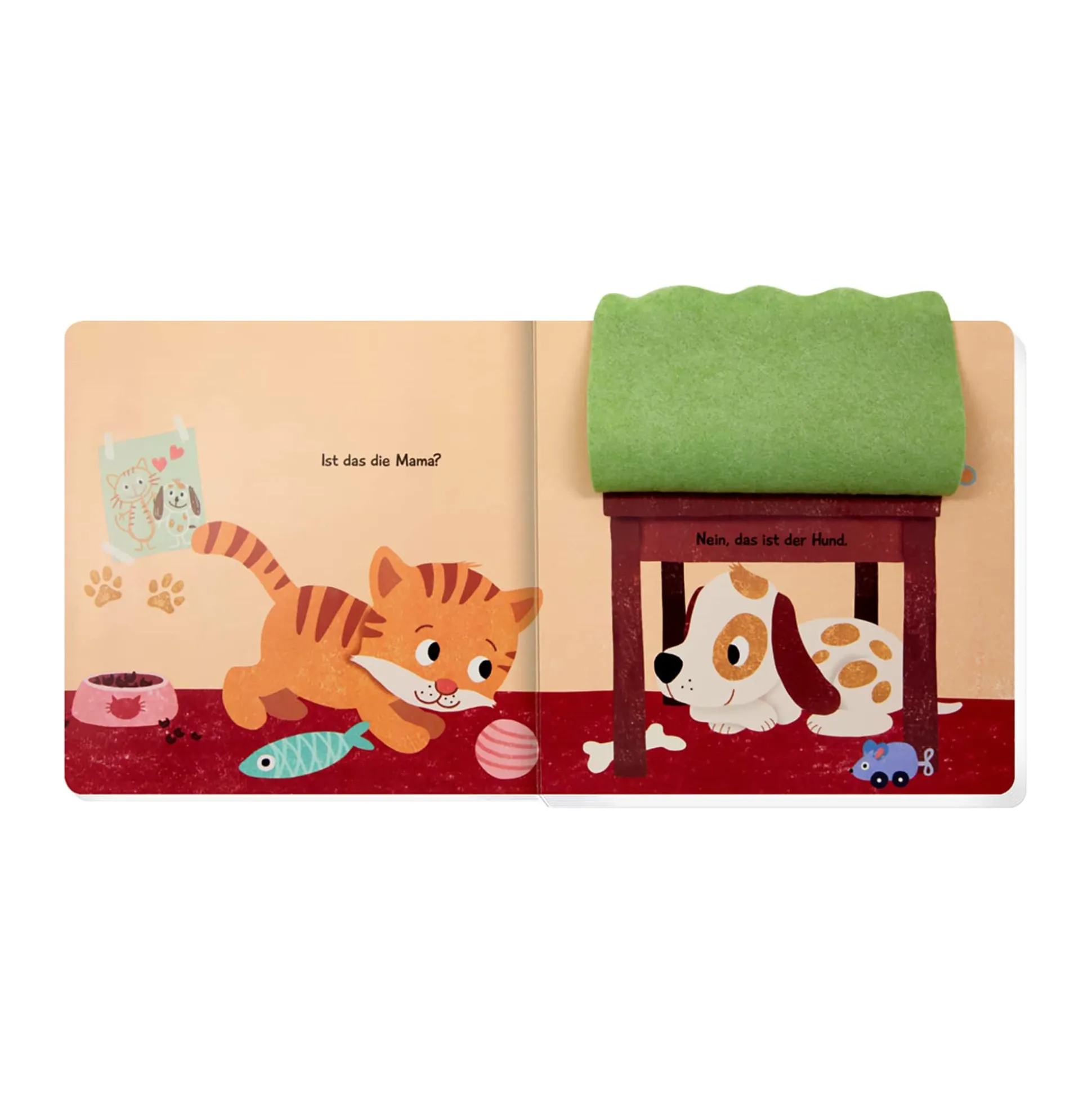 Mit kuschelweichen Klappen, einem Spiegel und einfachem Text zum Mitsprechen und Mitspielen. Beliebtes Kuckuck-wer-ist-da?-Prinzip.