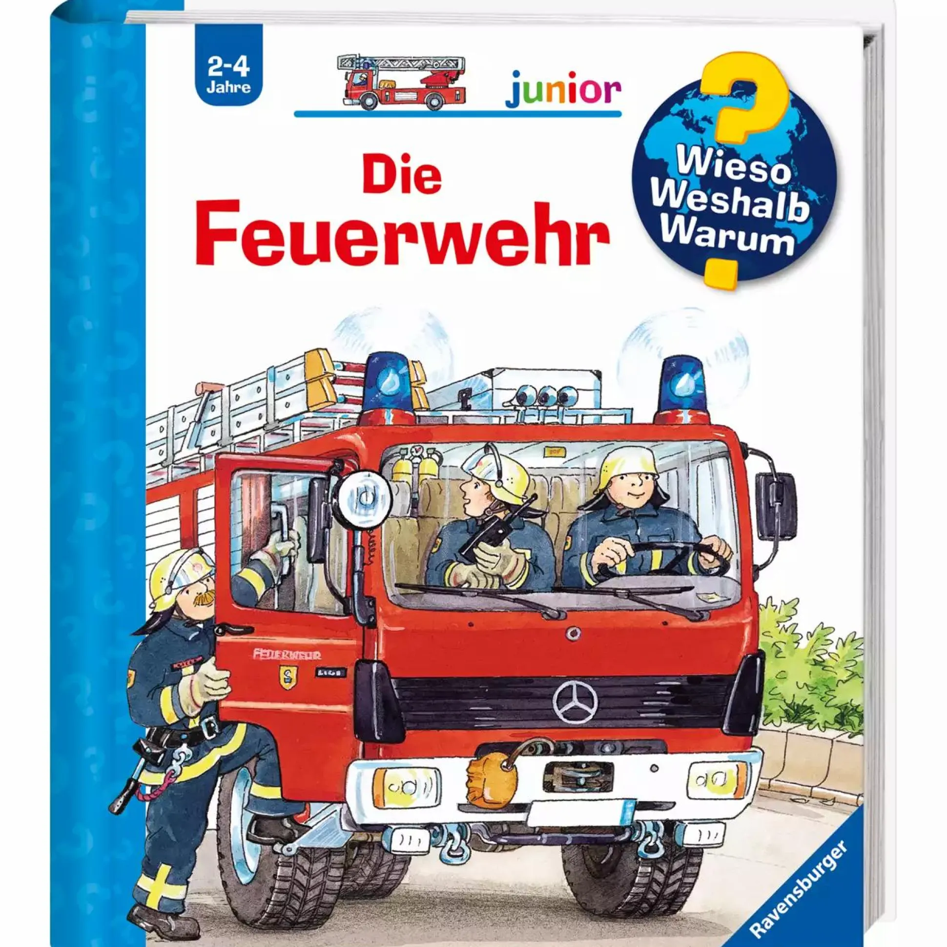 In dem Buch WWW junior Die Feuerwehr von Ravensburger erfährt dein Kind wann und wem die Feuerwehr zur Hilfe eilt. Die Ausrüstung und die Feuerwehrfahrzeuge werden mit Bewegungsklappen genau unter die Lupe genommen. Zahlreiche Fragen werden beantwortet und die Aufgaben der Feuerwehr werden auf eine spannende Weise gezeigt.