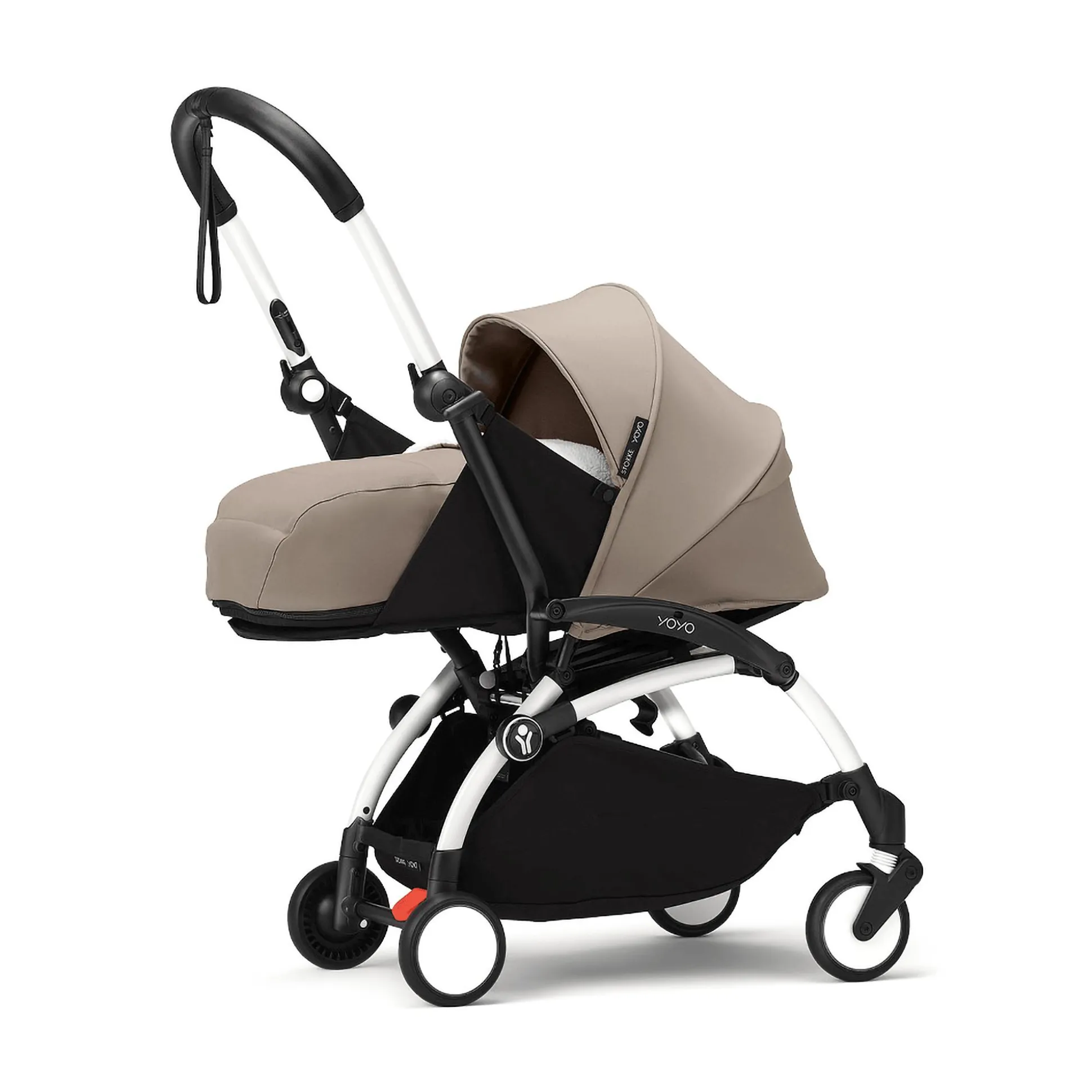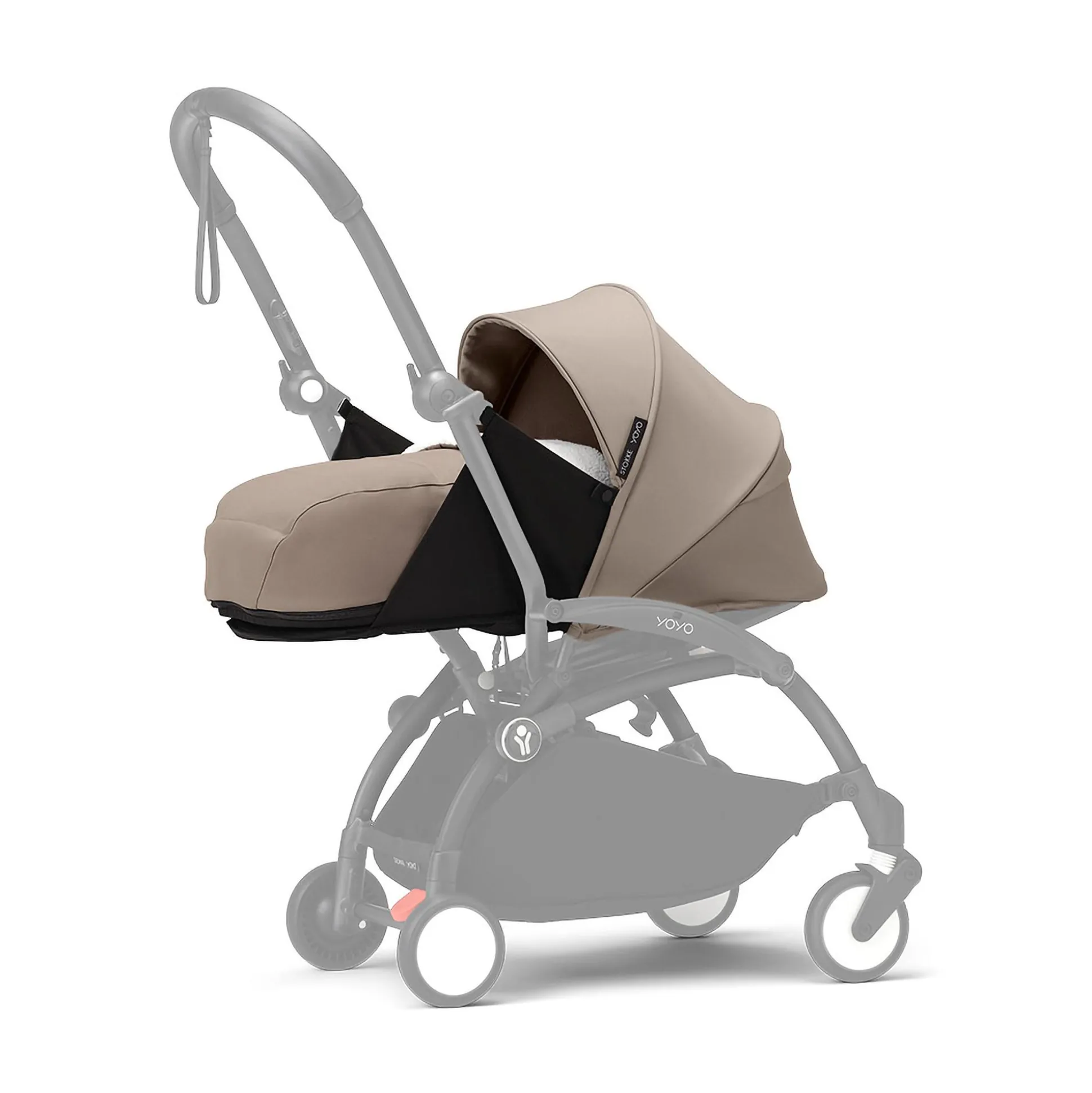 Mit dem YOYO³ Neugeborenen-Set im Design Taupe von Stokke verwandelt sich dein YOYO³ Buggy in einen Kinderwagen für Babys ab Geburt.Wenn du unterwegs bist liegt dein Baby bequem auf seiner kuschelig weichen Nestchenauflage, die speziell für Neugeborene entworfen wurde. Das 0+ Neugeborenen-Set ermöglicht es dir, dein Baby – dir zugewandt – ganz flach und dank des 5-Punkt-Gurtes absolut sicher abzulegen. Das Sonnenverdeck bietet UV 50+ und ist wasserabweisend. Das Set kann bis 30° C in der Waschmaschine gereinigt werden. Dank des YOYO³ Neugeborenen-Set ist die Reise mit dem Flugzeug auch möglich. Einfach handlich zusammengefaltet passt es ins Handgepäckfach.