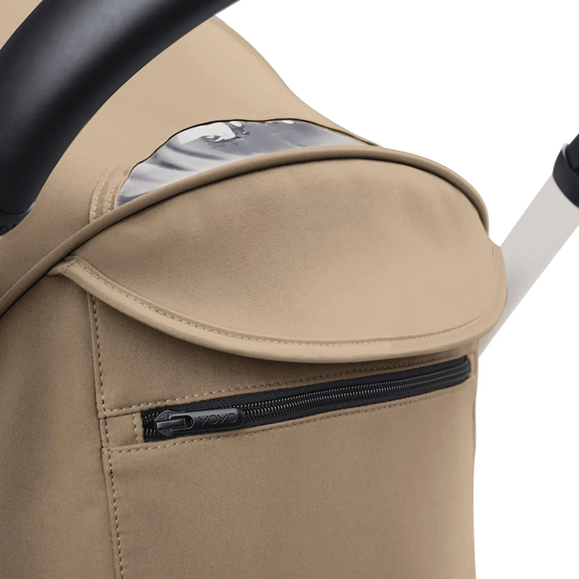 Das Set lässt sich mühelos auf das bereits vorhandene YOYO³ Gestell aufsetzen und bleibt dabei ebenso kompakt und leicht zusammenklappbar wie zuvor. Das ausziehbare UV-Verdeck schützt dein Kind vor Sonne und Wind, während das integrierte Sichtfenster dir erlaubt, stets einen Blick auf deinen kleinen Liebling zu haben. Die praktische Reißverschlusstasche auf der Rückseite sorgt außerdem dafür, dass alle wichtigen Dinge immer griffbereit sind.