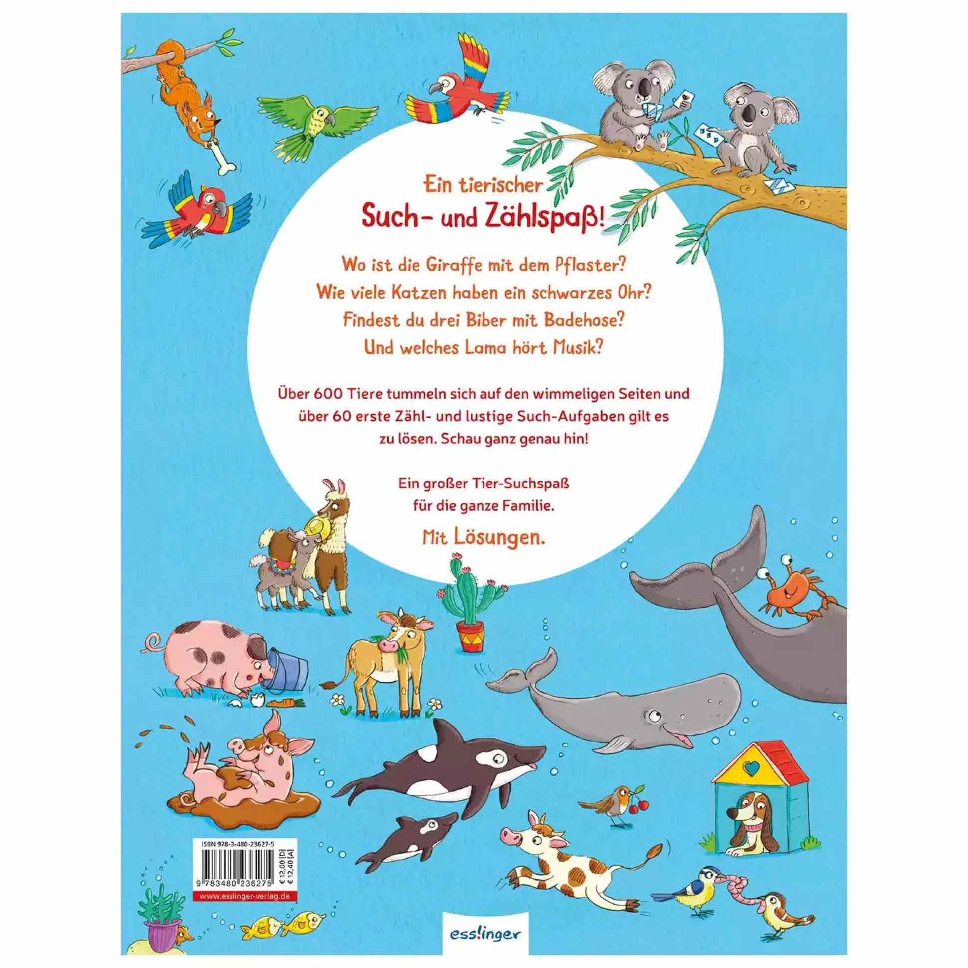 Auf zwanzig wimmelig-bunten Seiten tummeln sich mehr als 600 Tiere und fordern auf, erste Zähl-Aufgaben und knifflige Suchrätsel zu lösen. In dem Buch werden spielerisch genaues Beobachten, Konzentration und Auge-Hand-Koordination gefördert. Die Lösungen befinden sich am Ende des Buches.