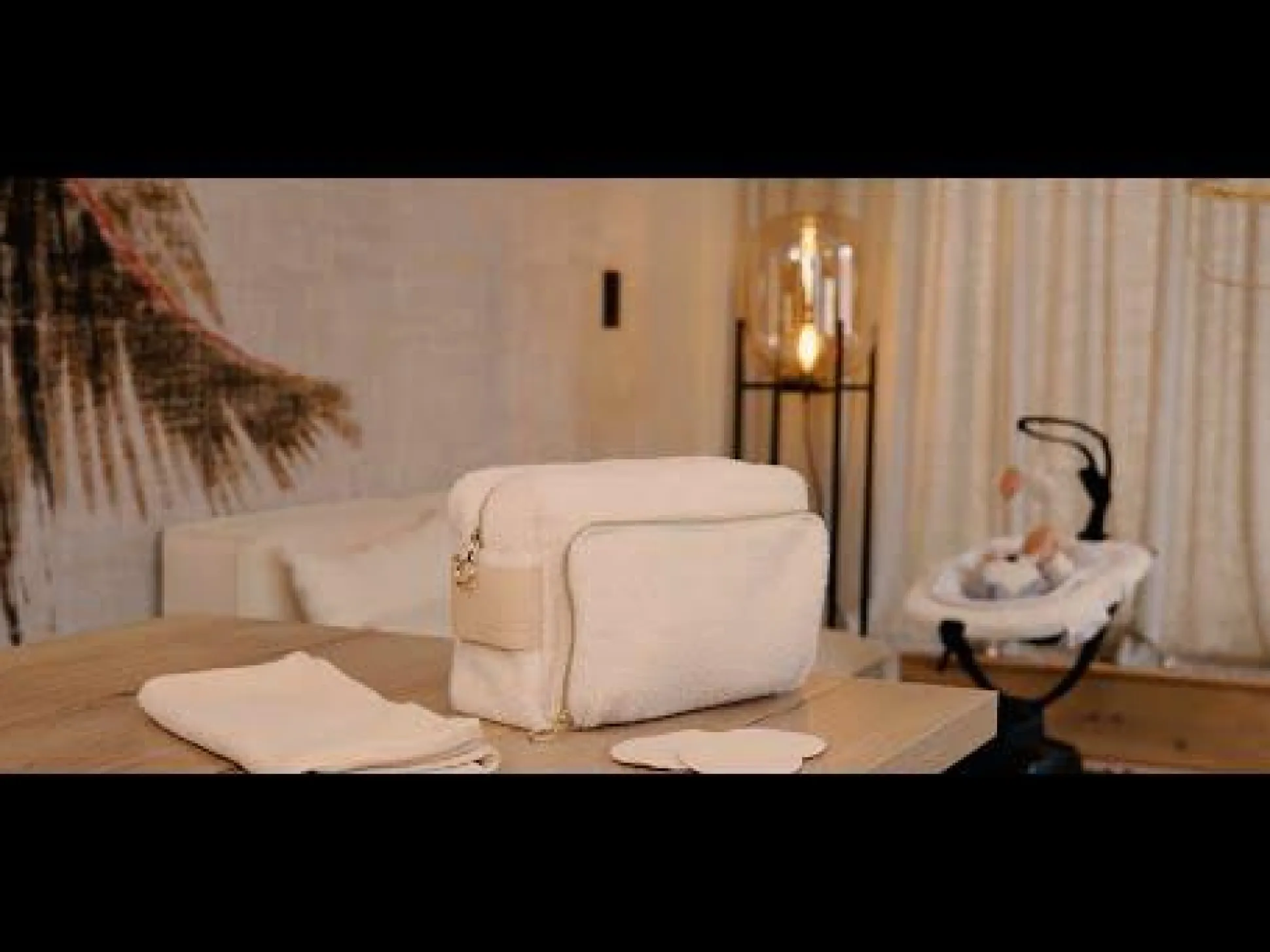 Der ultraweiche Bouclé-Stoff, goldene Reißverschlüsse und der breite Tragegriff aus Kunstleder verleihen der Tasche eine elegante Note, während das wasserabweisende Innenfutter für perfekte Hygiene und leichte Reinigung sorgt. Durchdachte Fächer, elastische Bänder und eine Außentasche mit Reißverschluss ermöglichen eine übersichtliche Aufbewahrung aller Utensilien. Das Set überzeugt durch praktische Alltagstauglichkeit und hochwertige Materialien aus recyceltem Polyester und Baumwolle – ein ideales Geschenk zur Geburt.
