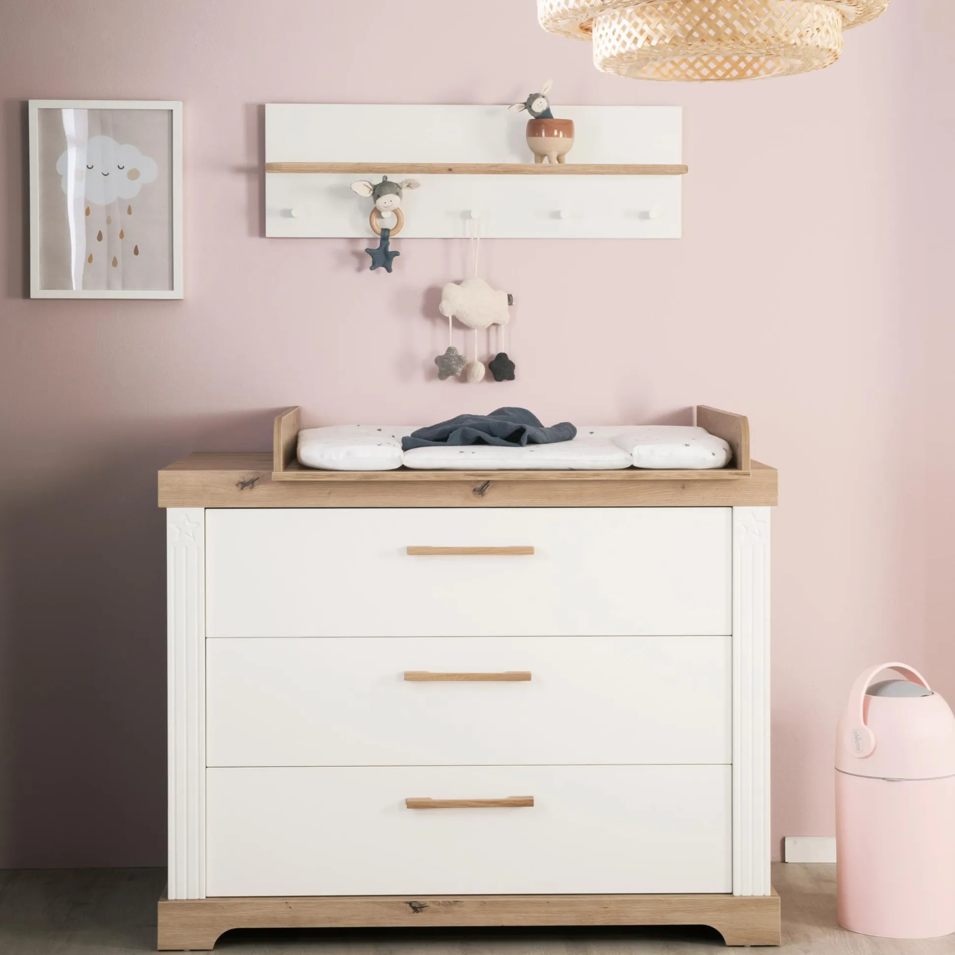 Mit der breiten Wickelkommode Milan von roba inklusive Wickelansatz machst du mit der rückenschonenden Wickelhöhe die Babypflege für dich und dein Baby zum Vergnügen. Die Wickelkommode hat drei Schubladen. So hast du immer alles griffbereit und viel Stauraum für Wickelutensilien und Kleidungsstücke. Die roba Wickelkommode ist ein wahres Multitalent und leistet dir viele Jahre gute Dienste.