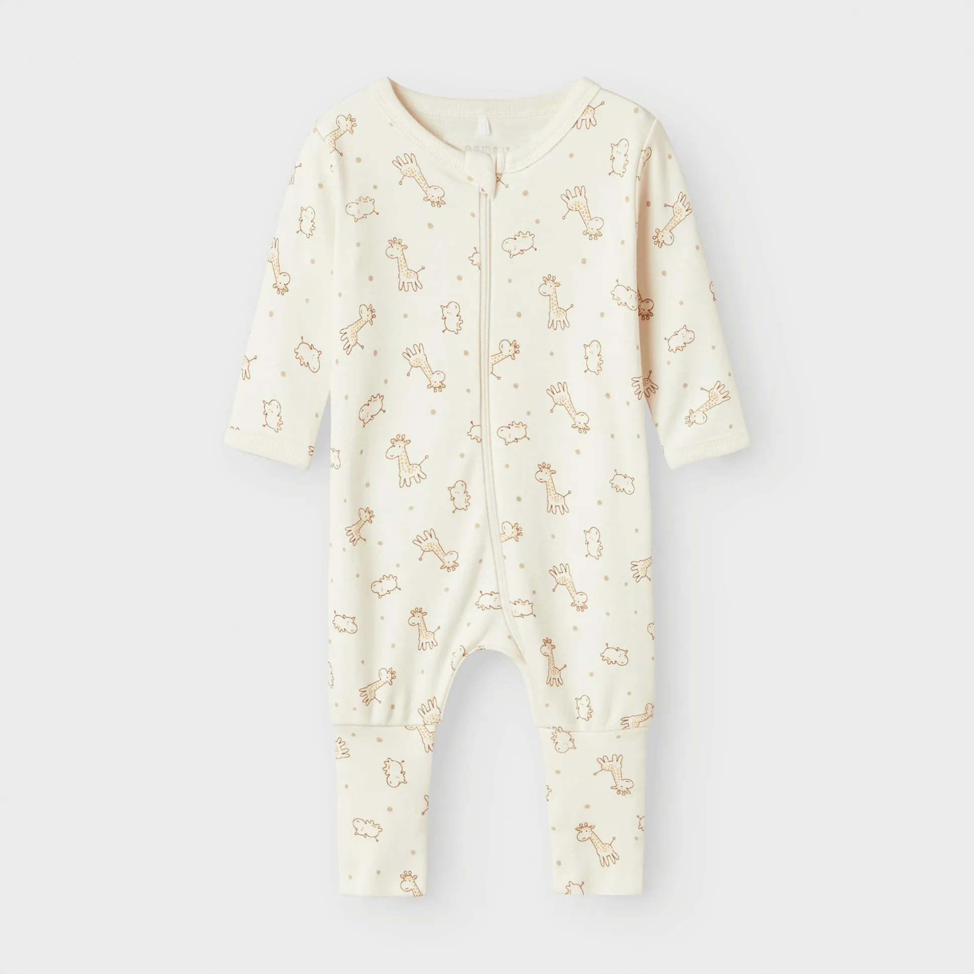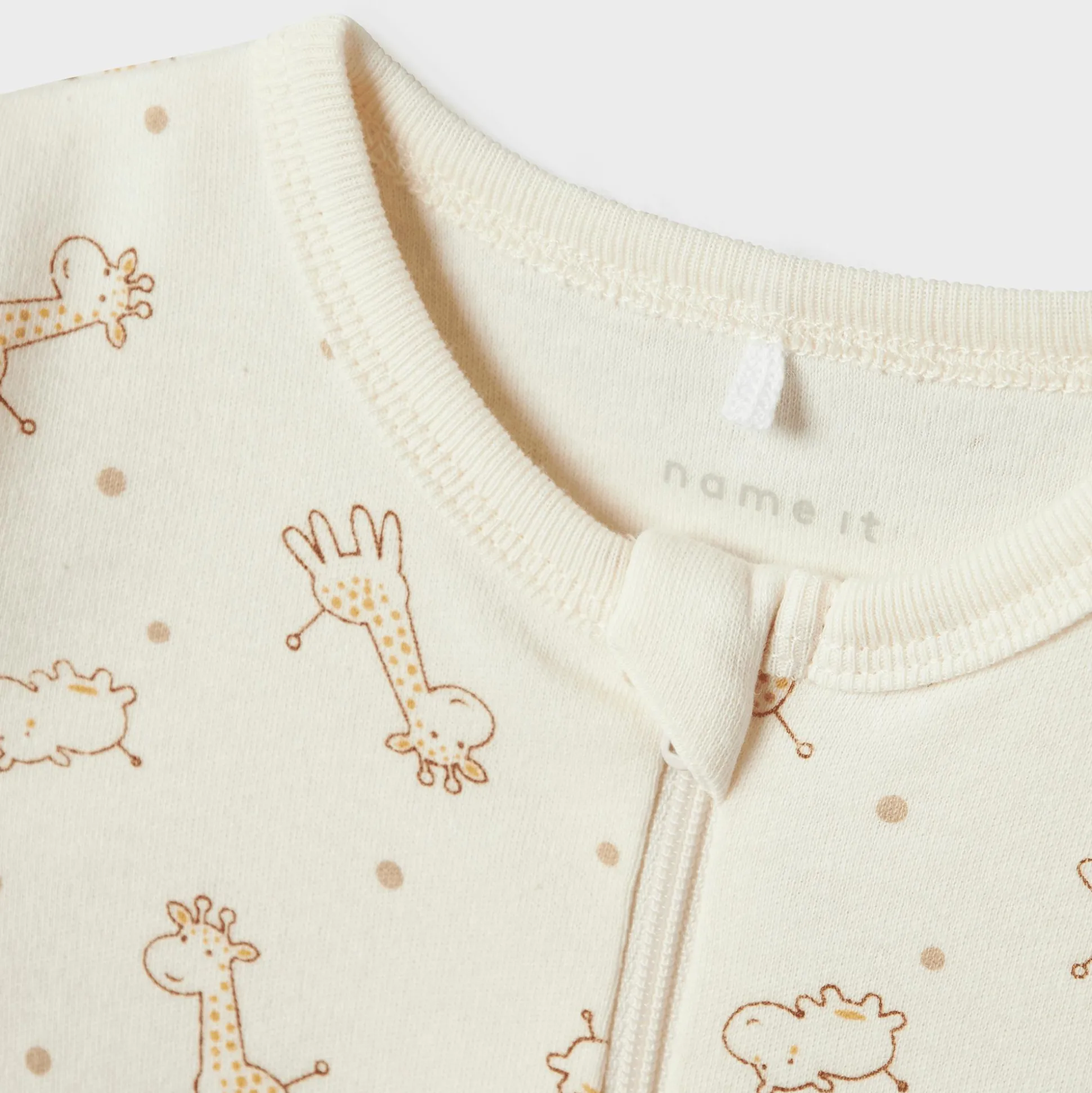 In diesem 2er-Pack Schlafanzüge Giraffe von name it wird dein Liebling sanft in den Schlaf gleiten. Es enthält zwei liebevoll gestaltete Bodys, die dein Kind sicher begeistern werden. Der erste Schlafanzug ist hellbraun, während der zweite Einteiler in einem sanften Weiß mit Giraffenmotiven erstrahlt und das Set perfekt ergänzt. Mit einem praktischen Reißverschluss, der über einen Kinnschutz verfügt, wird das An- und Ausziehen zum Kinderspiel. Zudem sorgen die umschlagbaren Bündchen für warme Füße und zusätzlichen Komfort. Die hochwertige Materialmischung aus 51% Bio-Baumwolle und 49% Baumwolle macht die Schlafanzüge zusätzlich besonders weich und hautfreundlich.