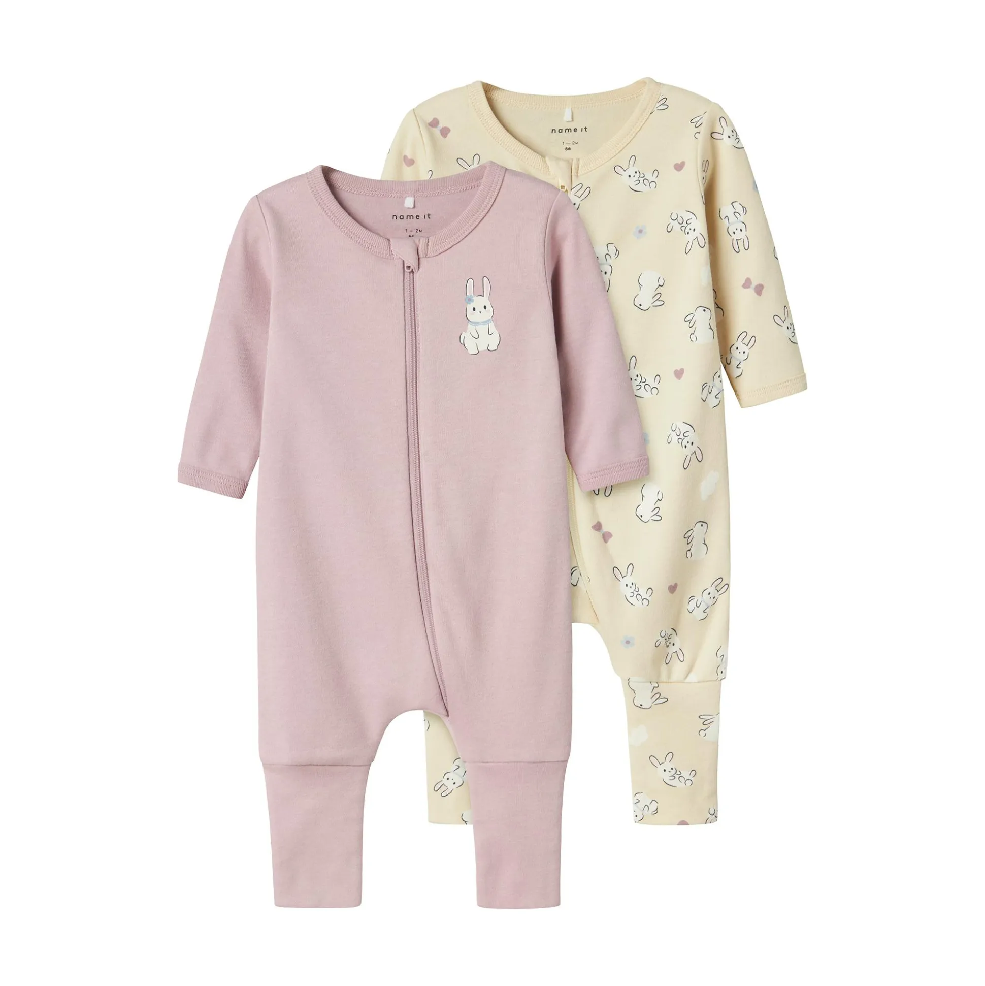 In diesem 2er-Pack Schlafanzüge Hase von name it wird dein Liebling sanft in den Schlaf gleiten. Es enthält zwei liebevoll gestaltete Bodys, die dein Kind sicher begeistern werden. Der erste Schlafanzug ist rosa und mit einem Hasen-Motiv verziert, während der zweite Einteiler in einem sanften Beige mit Häschen erstrahlt und das Set perfekt ergänzt. Mit einem praktischen Reißverschluss, der über einen Kinnschutz verfügt, wird das An- und Ausziehen zum Kinderspiel. Zudem sorgen die umschlagbaren Bündchen für warme Füße und zusätzlichen Komfort. Die hochwertige Materialmischung aus 51% Bio-Baumwolle und 49% Baumwolle macht die Schlafanzüge zusätzlich besonders weich und hautfreundlich.