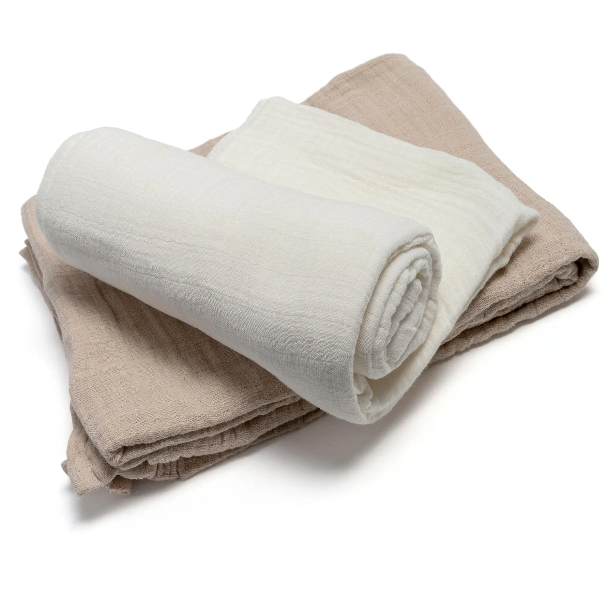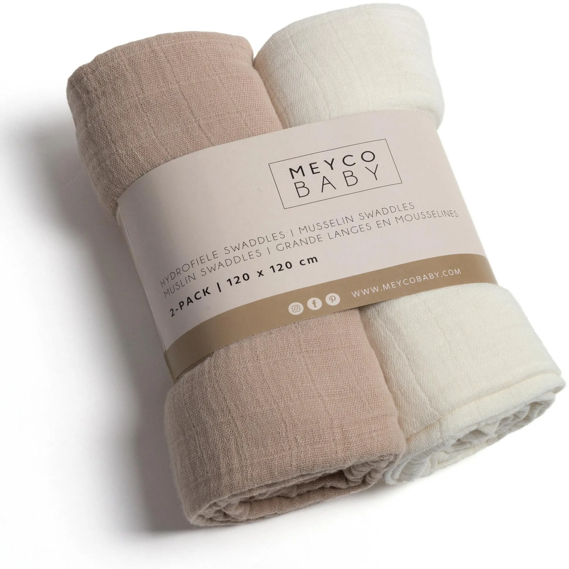 Die beiden Tücher in weiß und sand bestehen zu 100% aus vorgewaschener Baumwolle und sind so besonders saugstark. Das Mullset von Meyco Baby nimmt Feuchtigkeit gut auf und trocknet schnell.