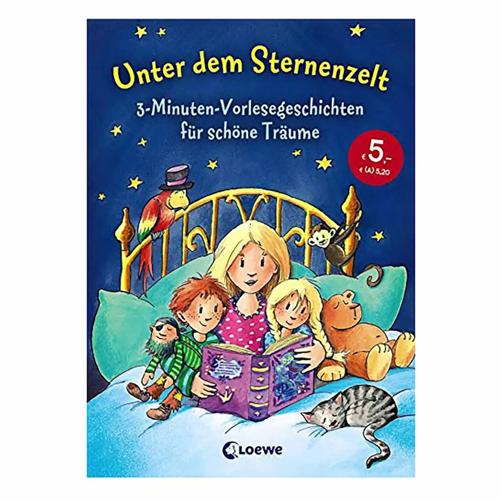 Das wunderschöne Buch 3-Minuten-Vorlesegeschichten – Unter dem Sternenzelt von Loewe mit über 50 kurzen Geschichten eignet sich bestens zum abendlichen Vorlesen und Kuscheln und entführt deine kleinen Zuhörer ins Land der Träume. Die Geschichten eignen sich für Kinder jeden Alters.