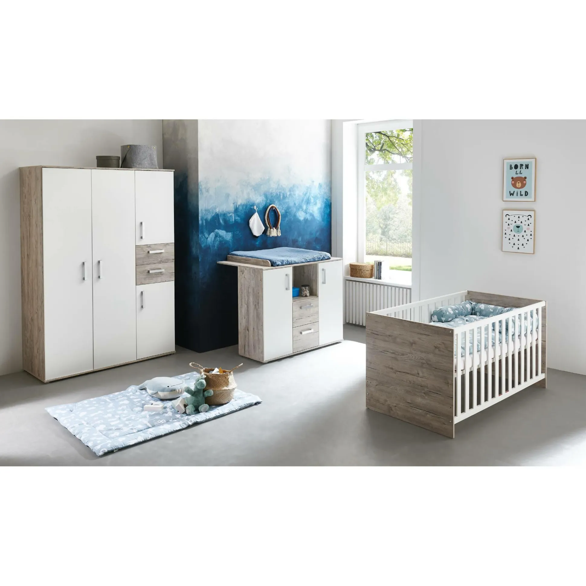 - Set bestehend aus Gitterbett, Kleiderschrank und Wickelkommode
