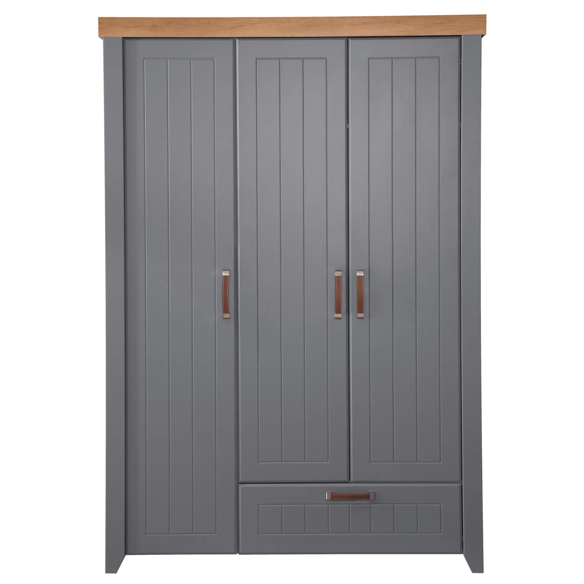 Der funktionelle, platzsparende Kinderzimmerschrank Ella bietet reichlich Stauraum und dient zur staubfreien Aufbewahrung von Spielzeug, Schuhen oder Kleidung. Mit drei Türen, einer Kleiderstange und einer Schublade sorgt der Schrank für Ordnung im Kinder- oder Spielzimmer.
