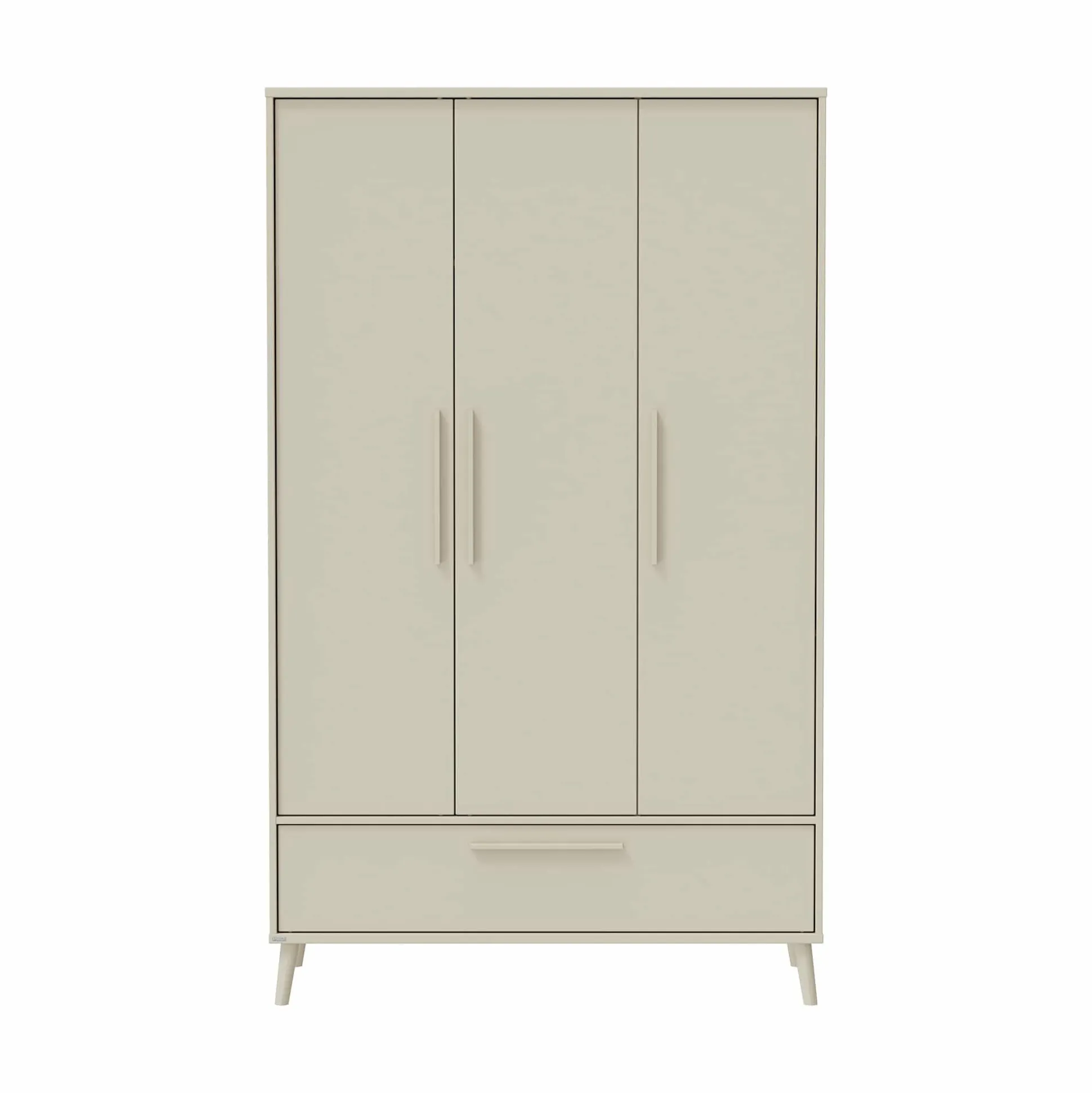 Das schlichte, beige Design fügt sich harmonisch in jedes Kinder- oder Schlafzimmer ein und sorgt für eine warme, freundliche Atmosphäre. Die klare Linienführung und die angenehme Farbgebung machen den Kleiderschrank zu einem stilvollen Begleiter, der sowohl funktional als auch ästhetisch überzeugt.