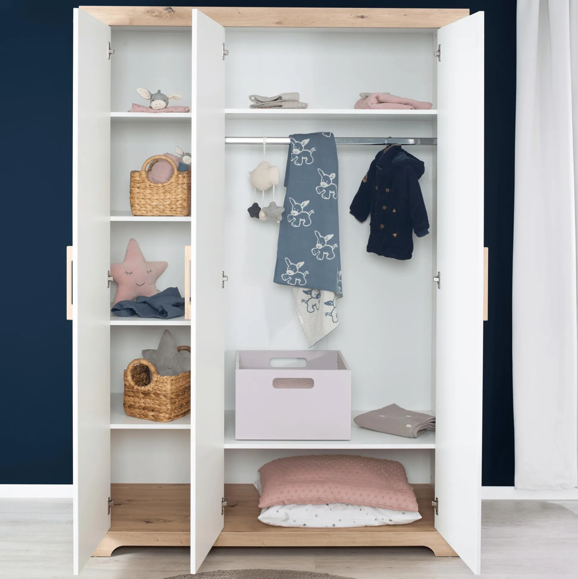 Der roba Kleiderschrank Milan fügt sich dank seines dezenten Designs in jedes Kinderzimmer ein. Der funktionelle, platzsparende Kinderzimmerschrank bietet reichlich Stauraum und dient zur staubfreien Aufbewahrung von Kleidung, Schuhen oder Spielzeug. Der Kleiderschrank Milan sorgt mit 3 Türen, einer Kleiderstange und den Einlegebögen für Ordnung im Kinder- oder Spielzimmer.