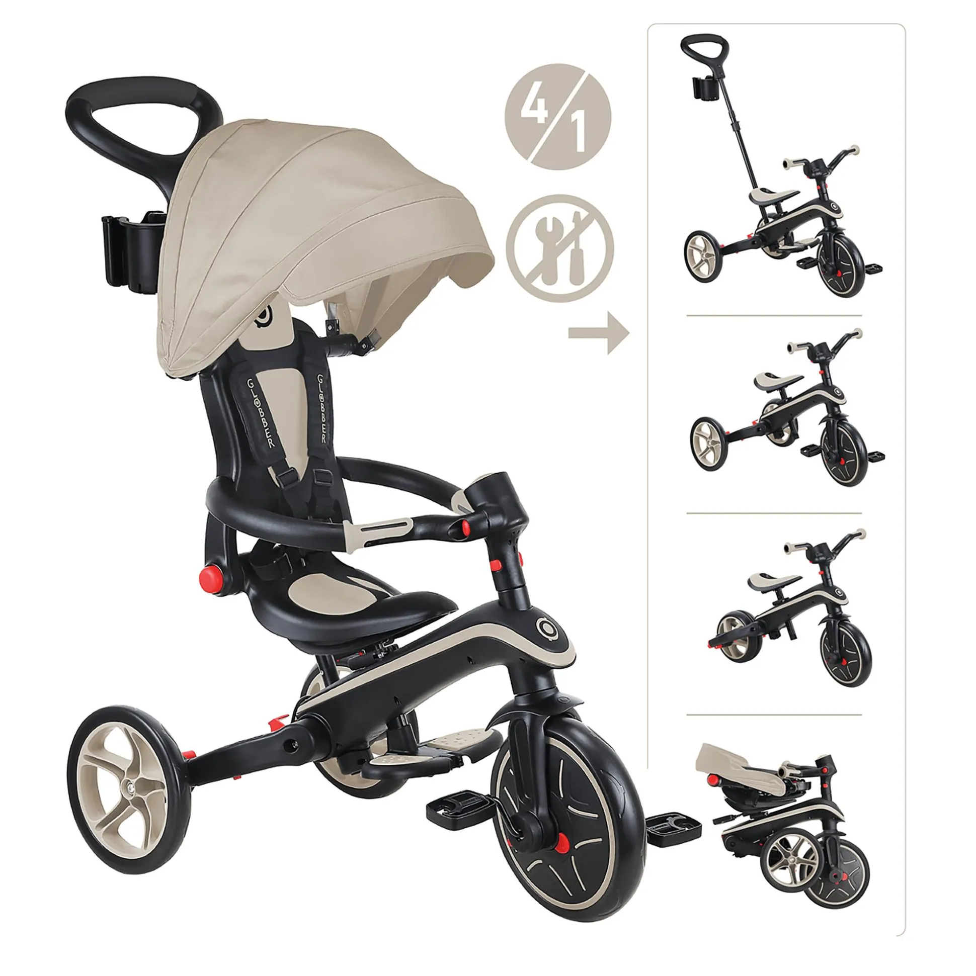 - 4 in 1 Explorer Trike Taupe faltbar von GLOBBER
