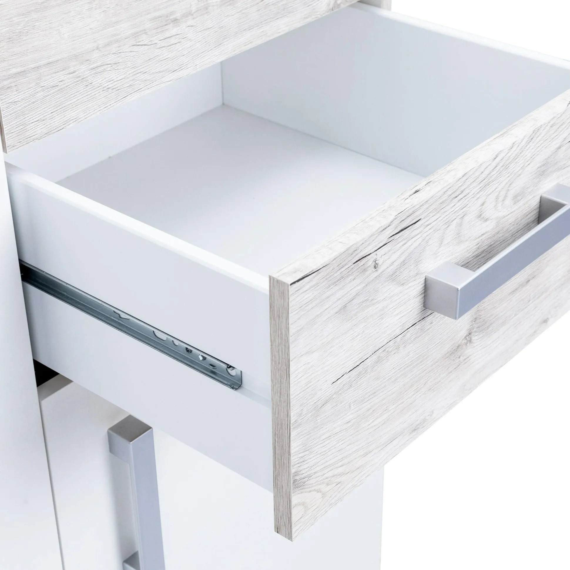 Die hochwertige Verarbeitung aus melaninbeschichtetem Holzwerkstoff sorgt für eine pflegeleichte und abriebfeste Oberfläche, die selbst intensiver Nutzung standhält und sich einfach mit einem Tuch reinigen lässt. Ein langlebiges Möbelstück, das durch seine Funktionalität und Robustheit überzeugt.