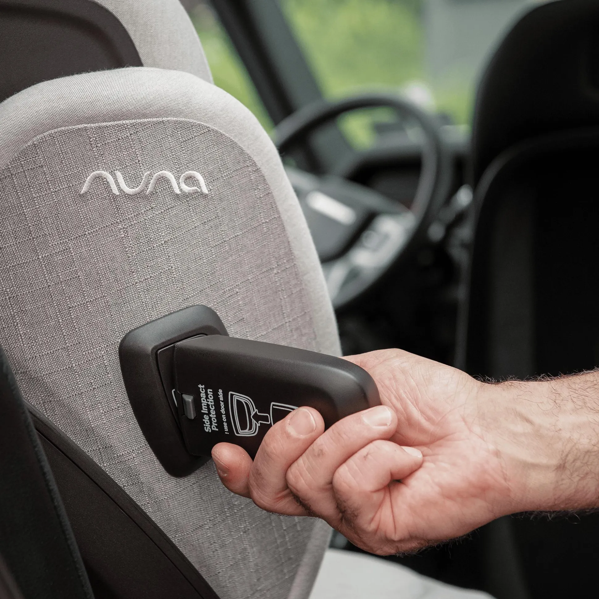 Ein energieabsorbierender EPP-Schaum sowie das aufsteckbare Seitenaufprallschutzelement sorgen für einen umfassenden Seitenaufprallschutz bei jeder Fahrt. Die Gurtführung mit Farbindikatoren sorgt für ein schnelles und sicheres Anschnallen. Den Sitzbezug aus einem weichen Baumwoll-Mix kannst du einfach abnehmen und in der Waschmaschine waschen.