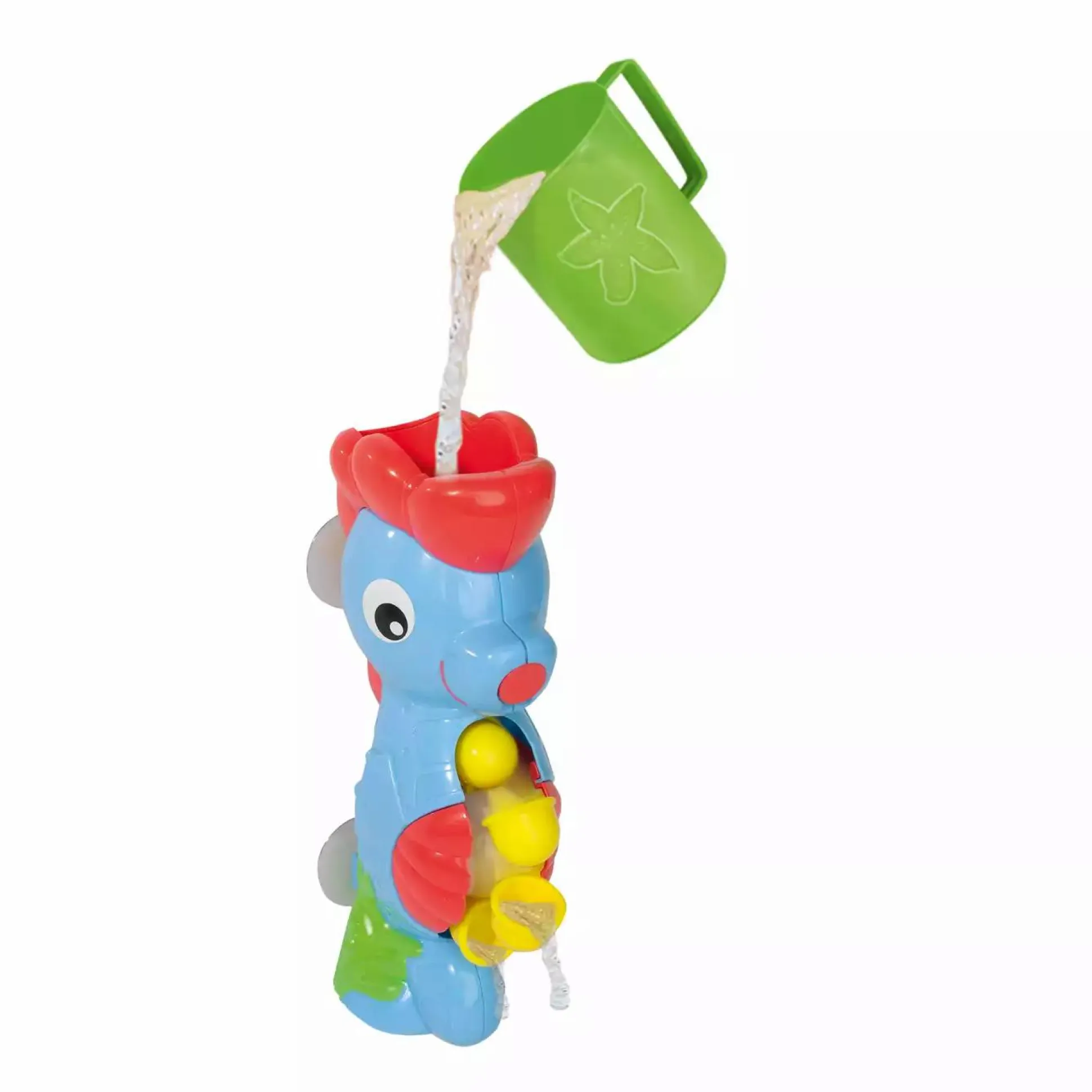Das Badewannen-Seepferdchen von Simba aus der „ABC“ Serie kann mit den Saugnäpfen an der Badewanne befestigt werden. Mit dem grünen Becher kann Wasser in das lustige Wasserrad am Bauch des bunten, ca. 26 cm großen Seepferdchens geschüttet werden und der Badewannenspaß beginnt.