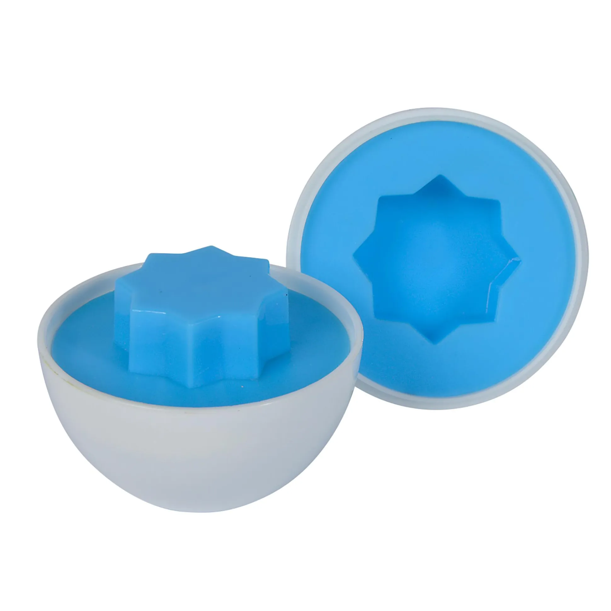 So kann dein kleiner Schatz beim Spielen viel Neues entdecken, die unterschiedlichsten Farben und Formen kennenlernen und gleichzeitig wichtige Fähigkeiten trainieren: Das Zuordnen und Zusammenstecken der passenden Eierhälften unterstützt das logische Denkvermögen und schult in besonderem Maße die Hand-Auge-Koordination.